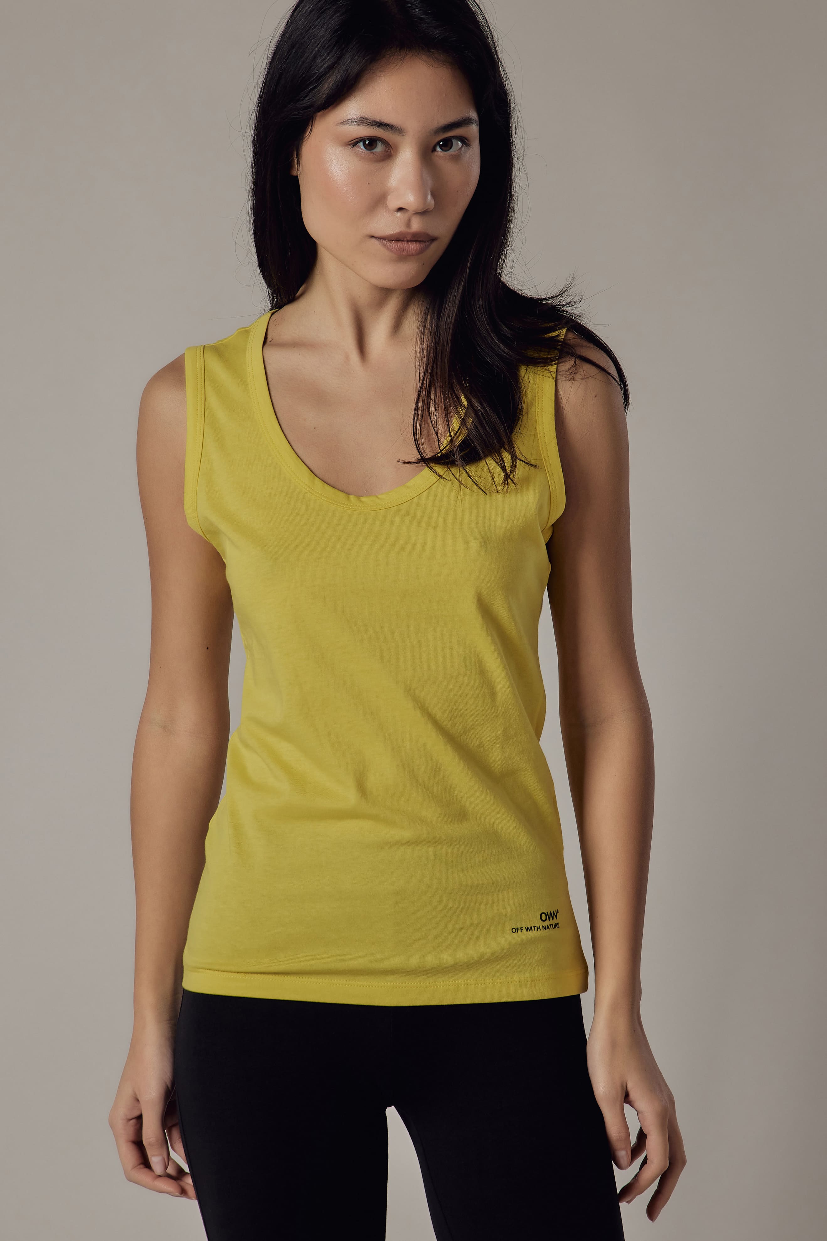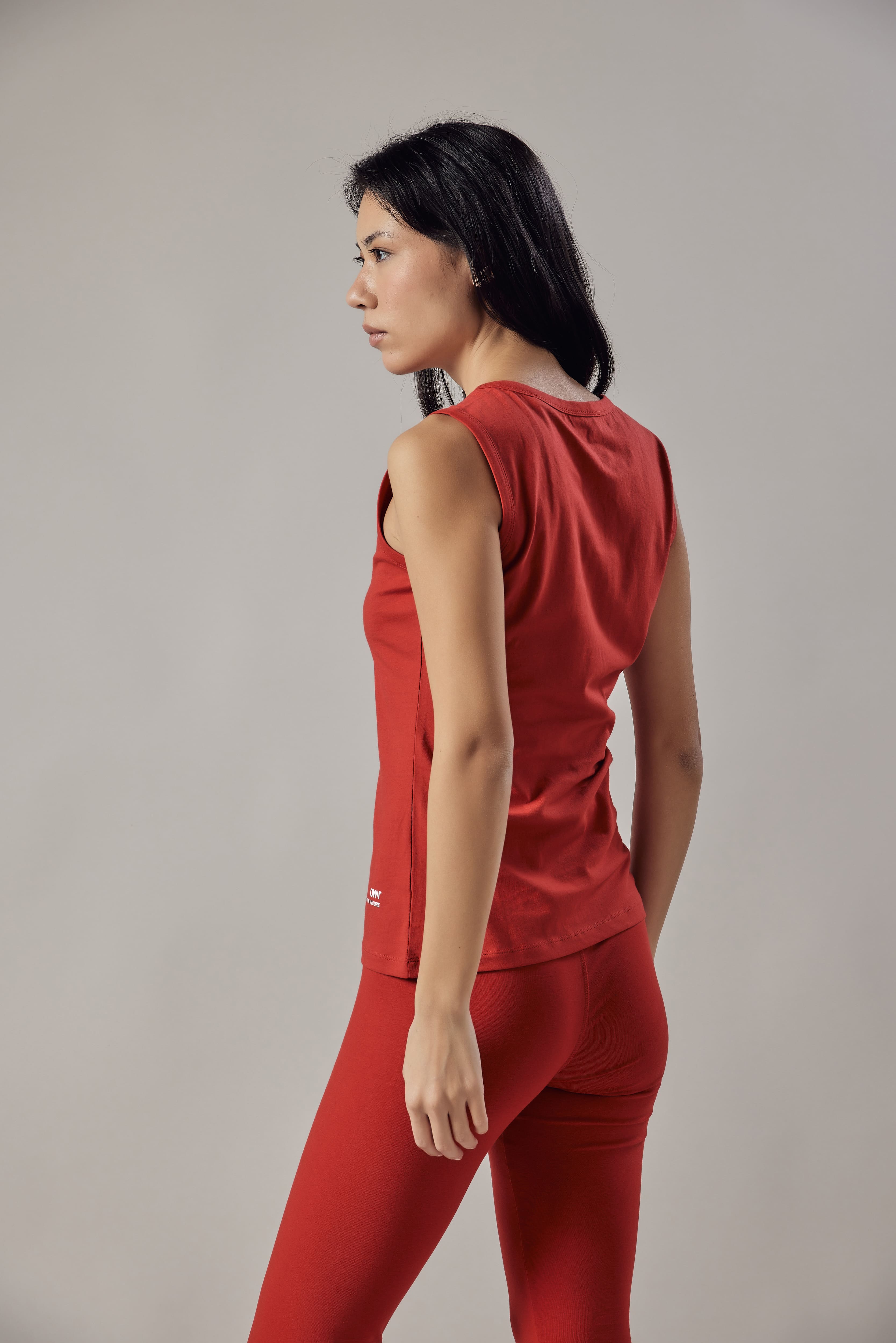 Canotta spalla larga con collo e giromanica in costina.