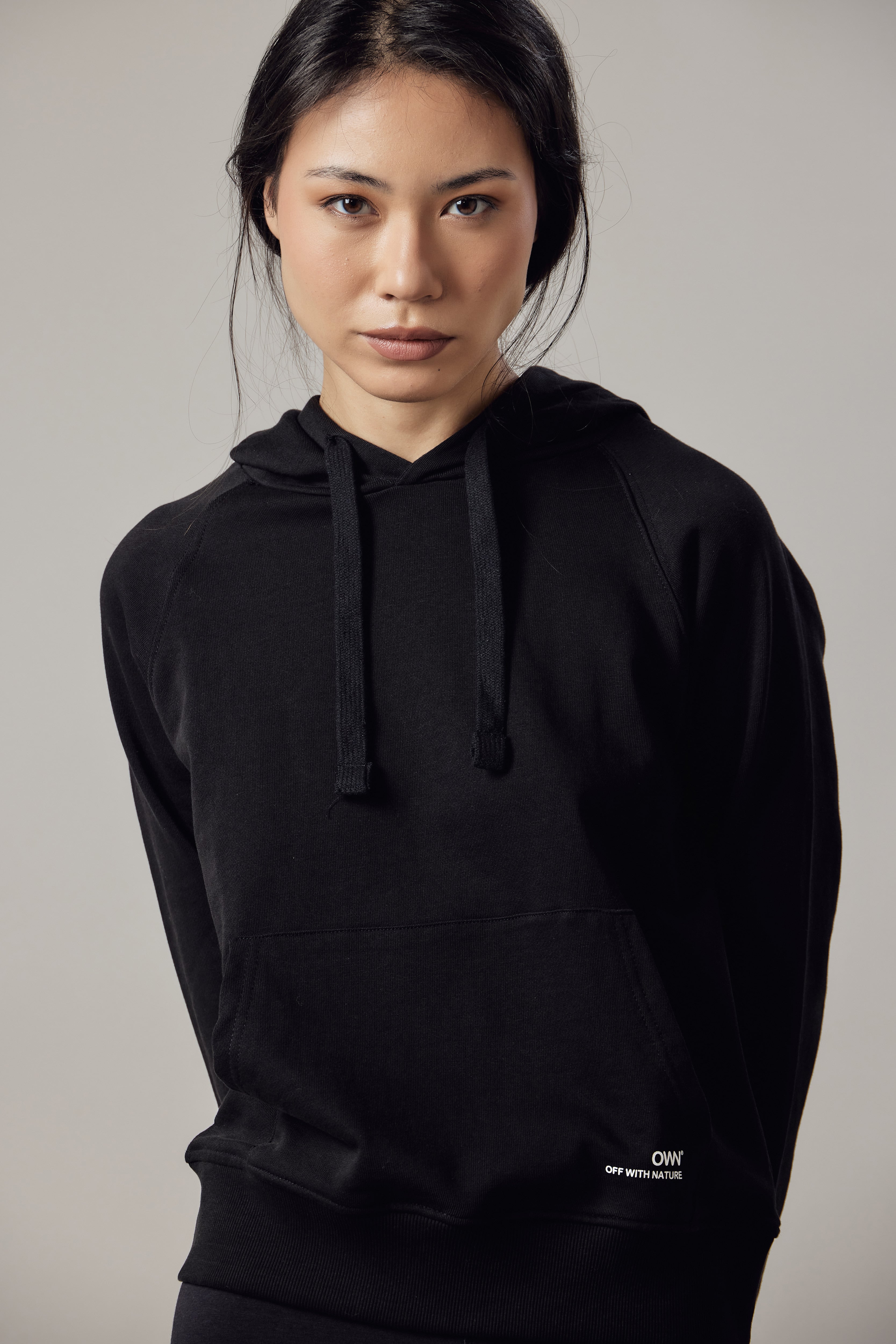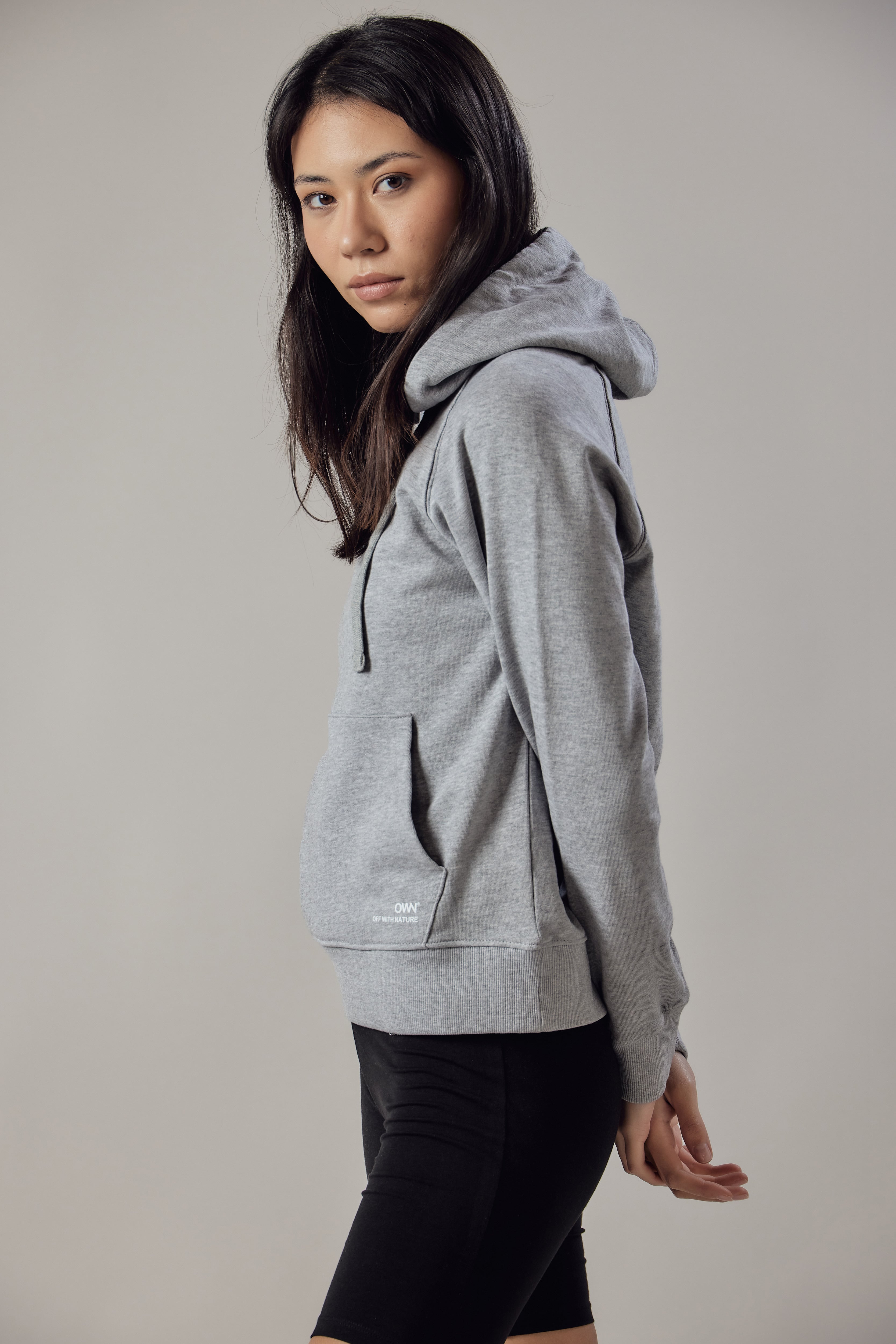 Felpa con cappuccio, tasca marsupio, fondo e polsini in costina.
