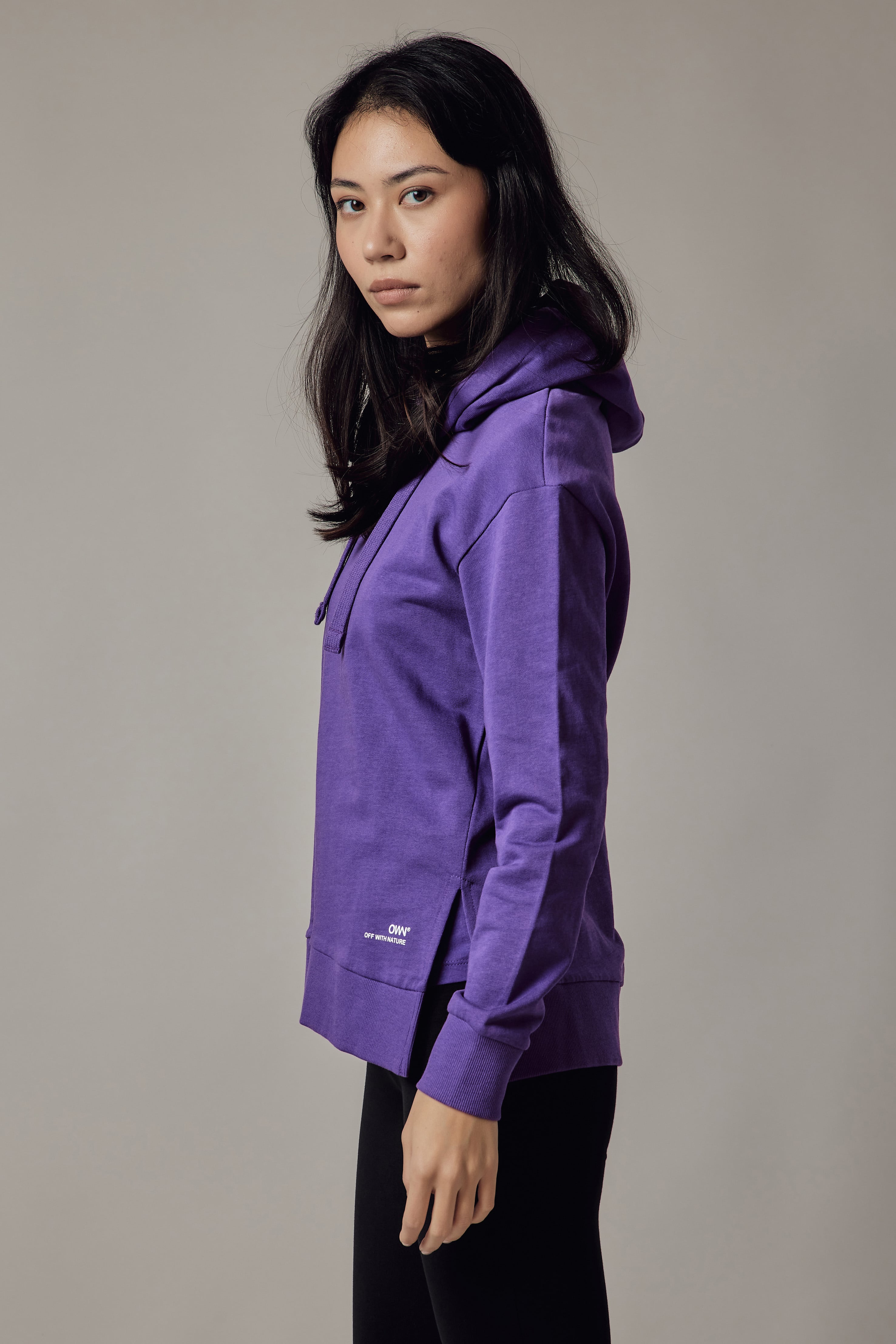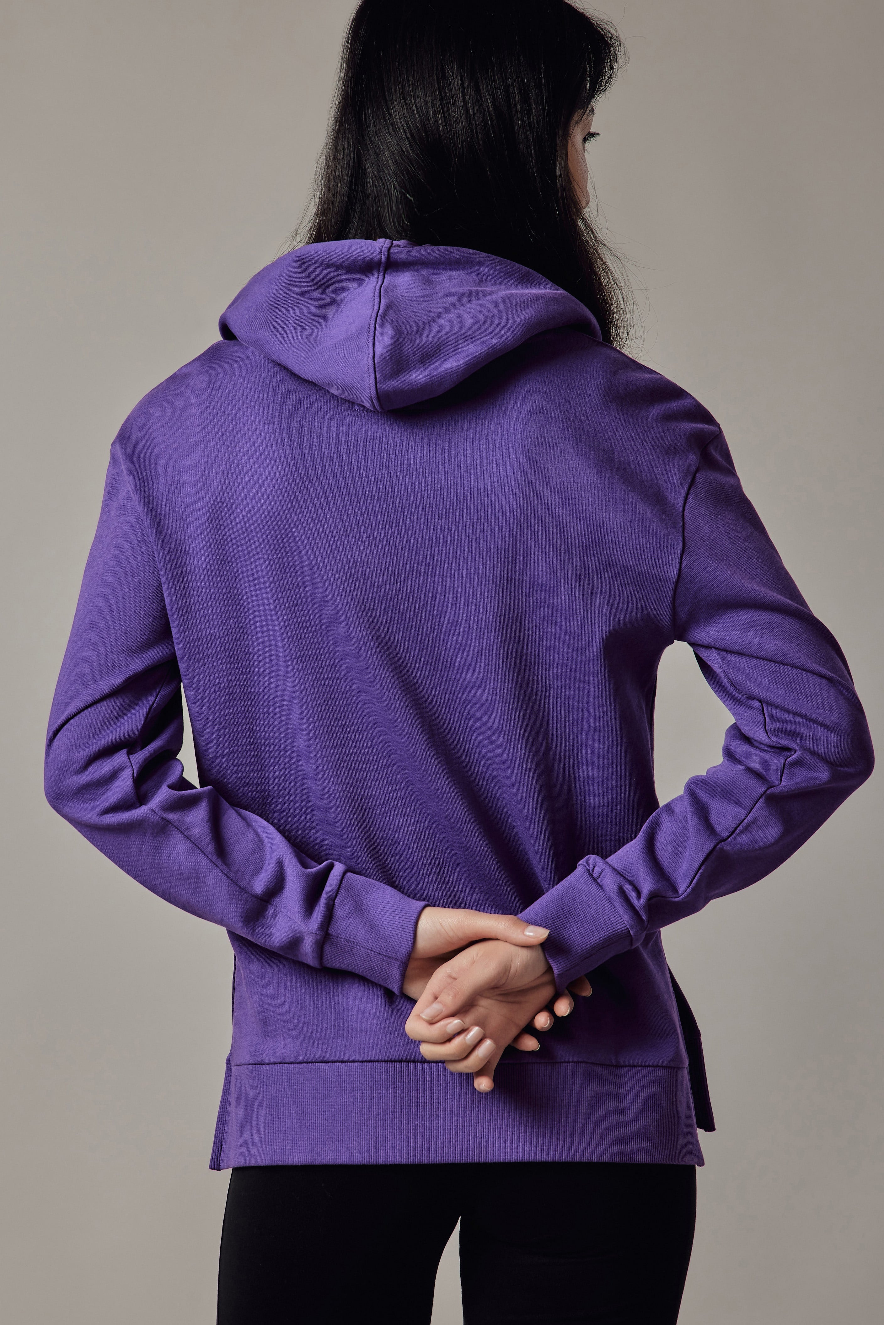 Felpa con cappuccio, spacchi laterali, fondo e polsini in costina.