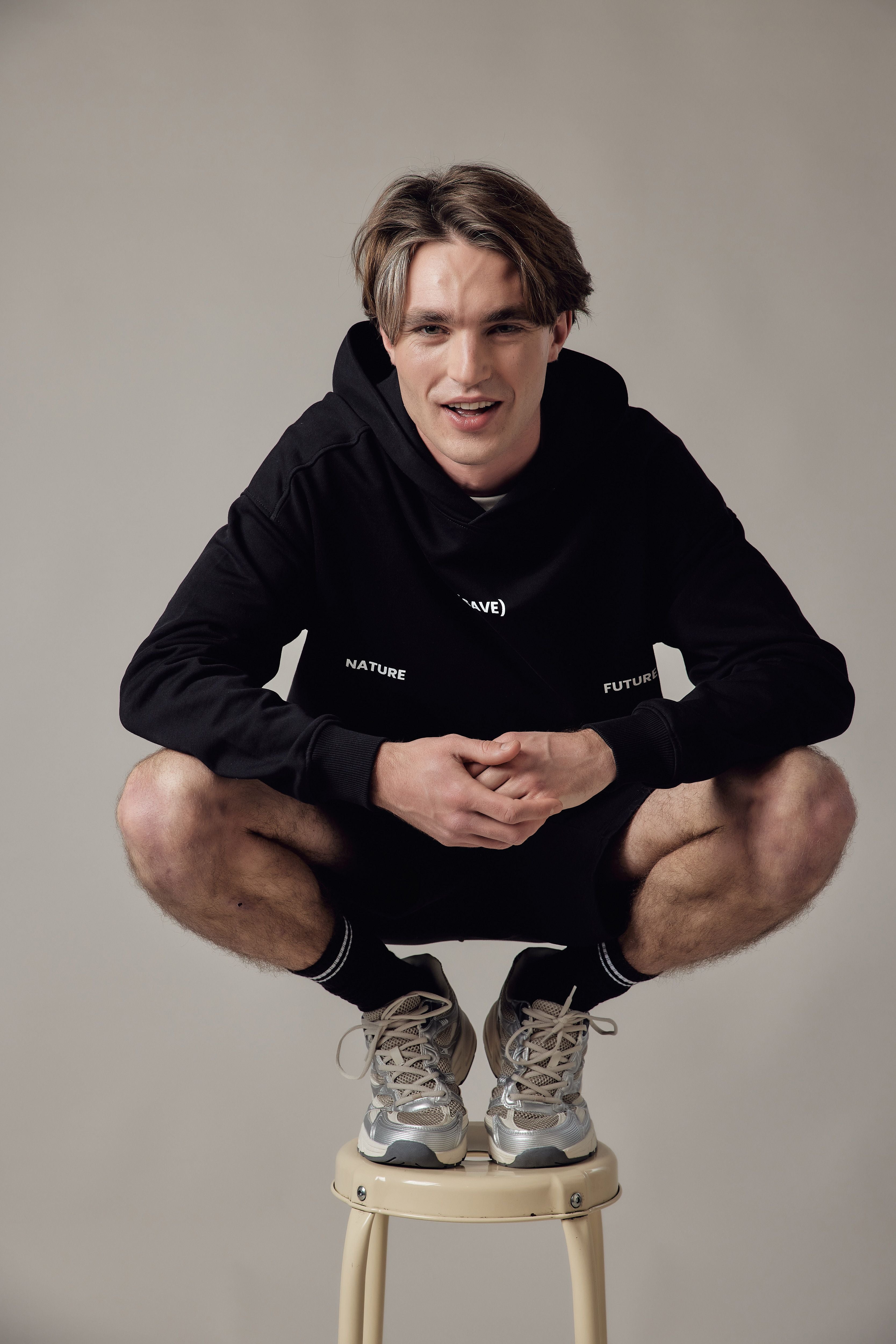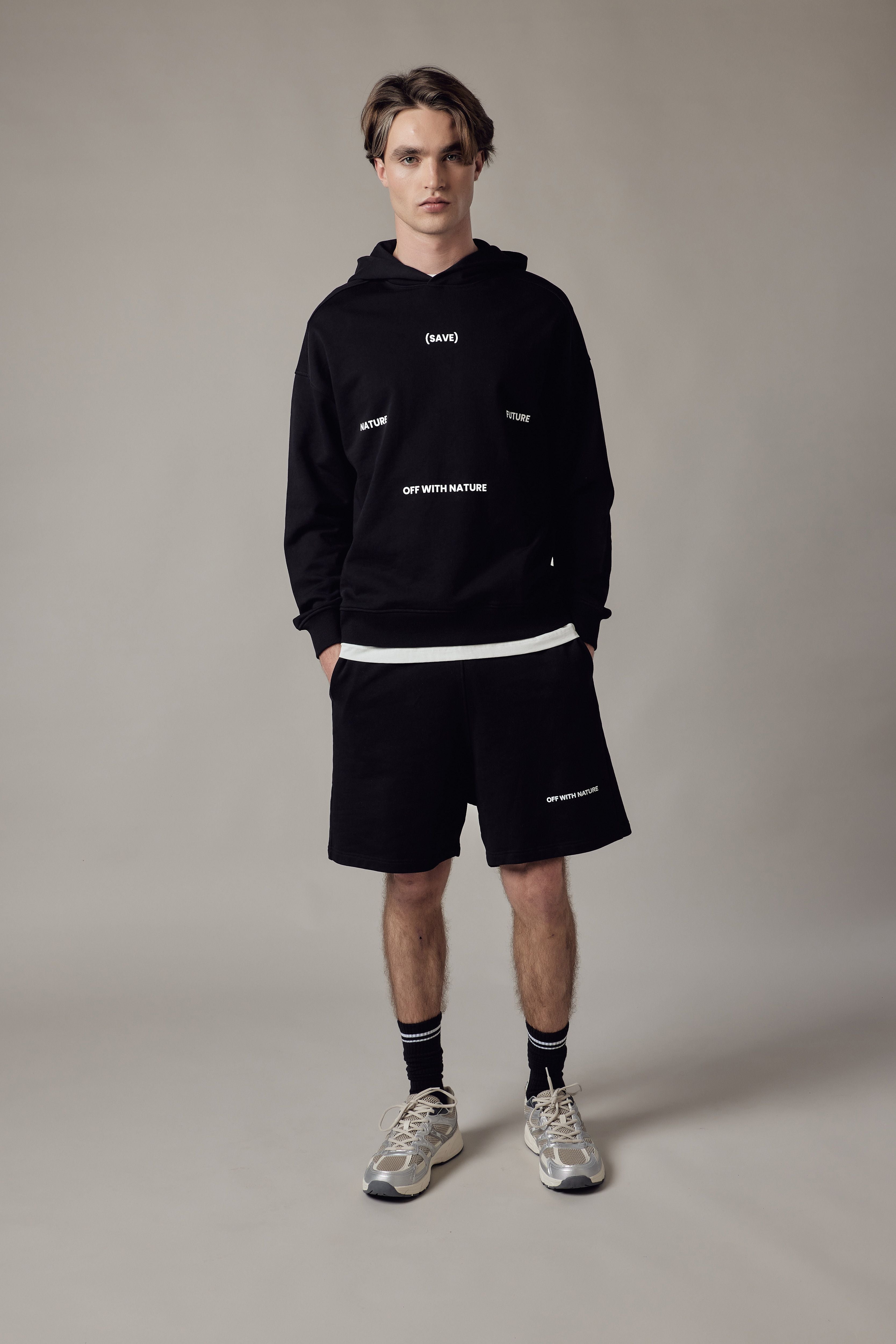 Felpa uomo con cappuccio con stampa a contrasto sul fronte e logo sul retro.