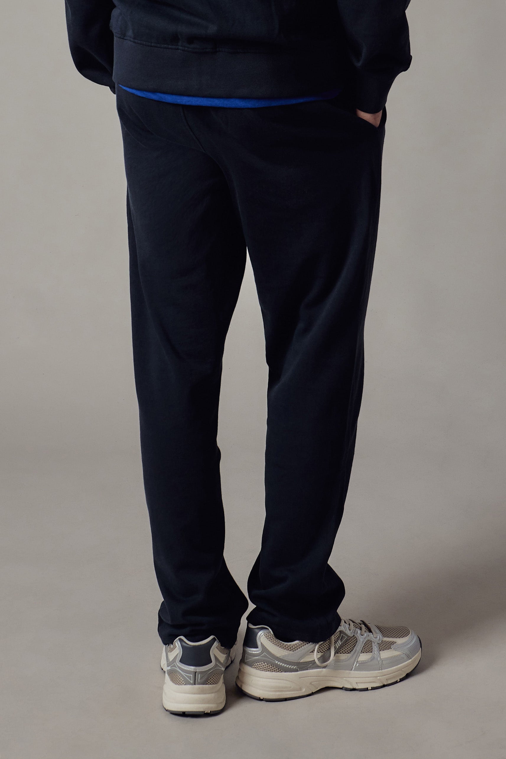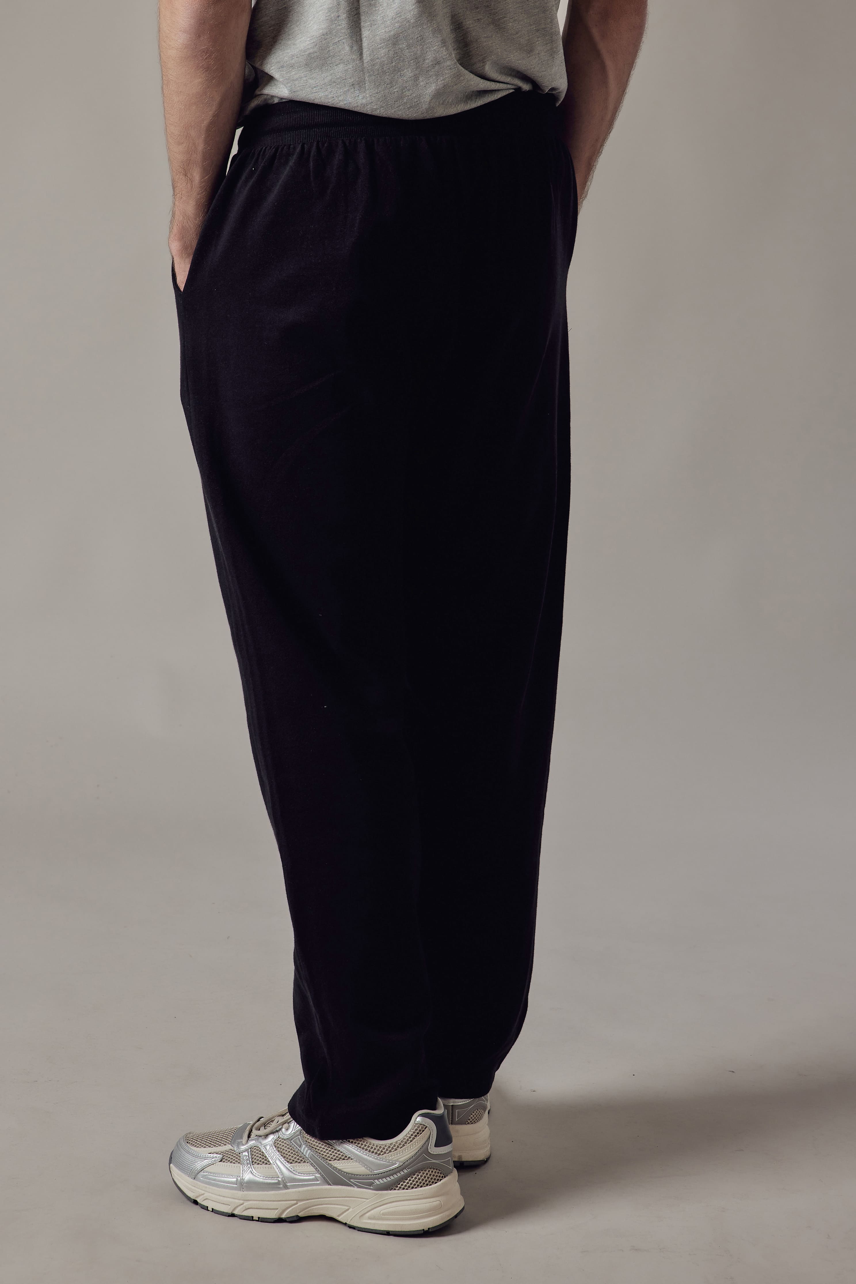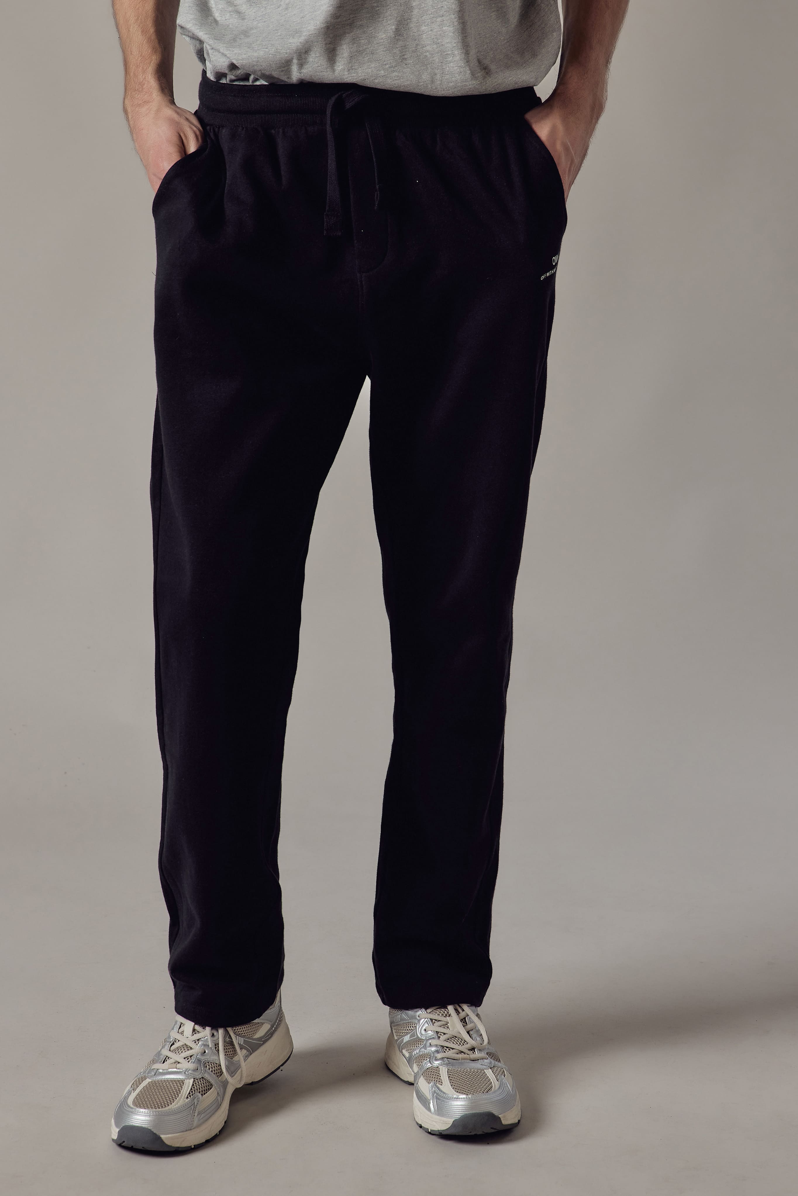 Joggers felpati con tasche laterali. Cinturino e polsini in costina.