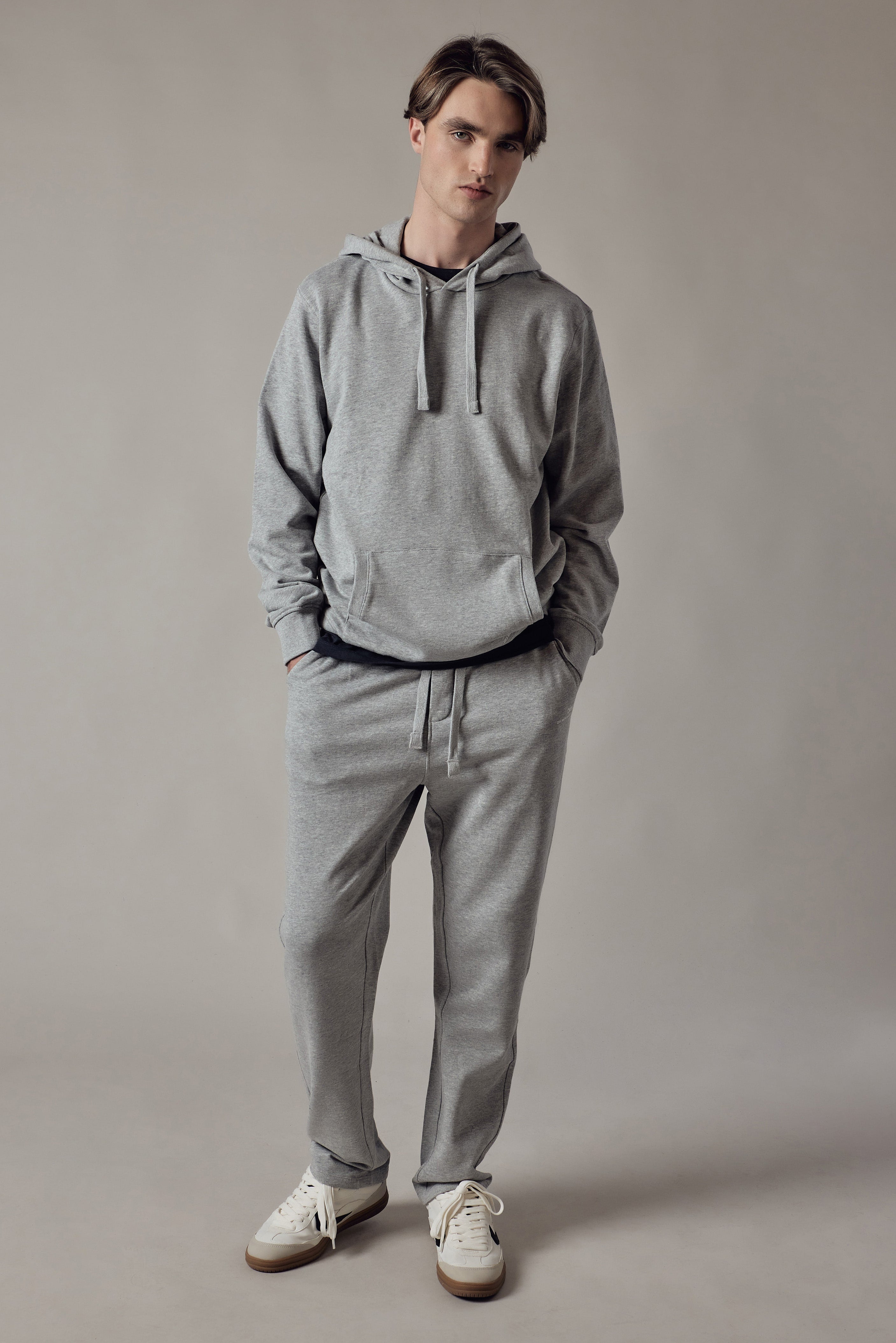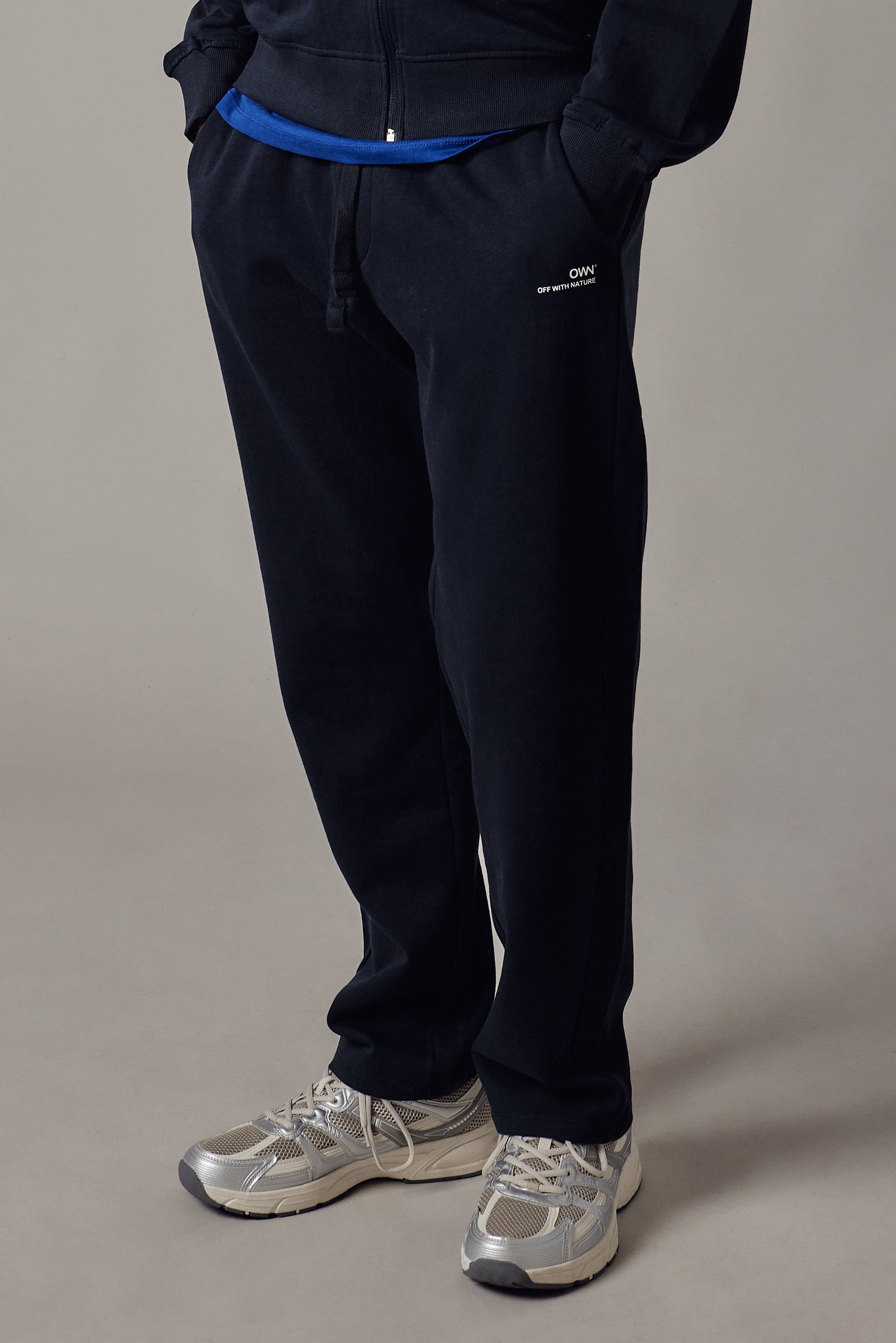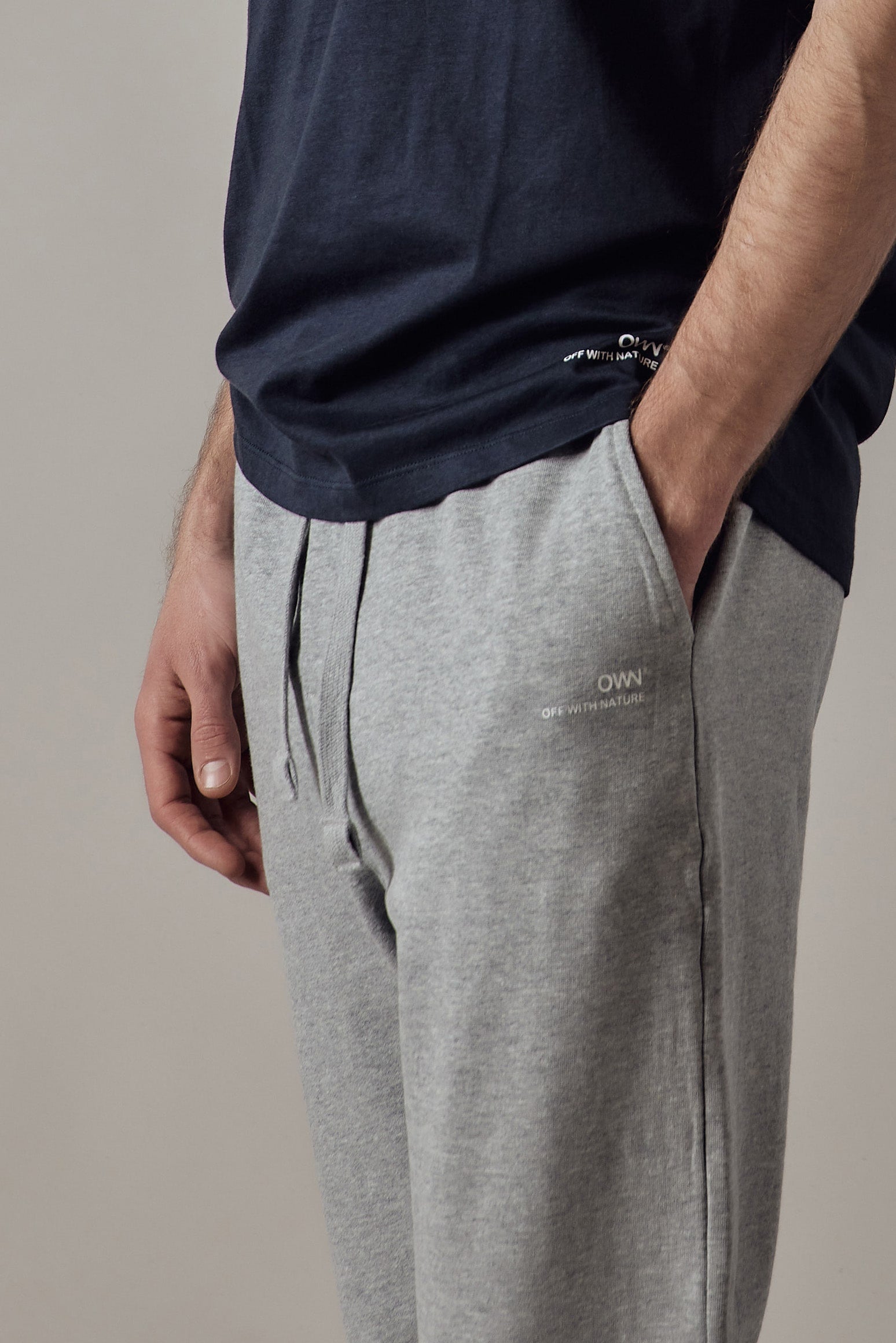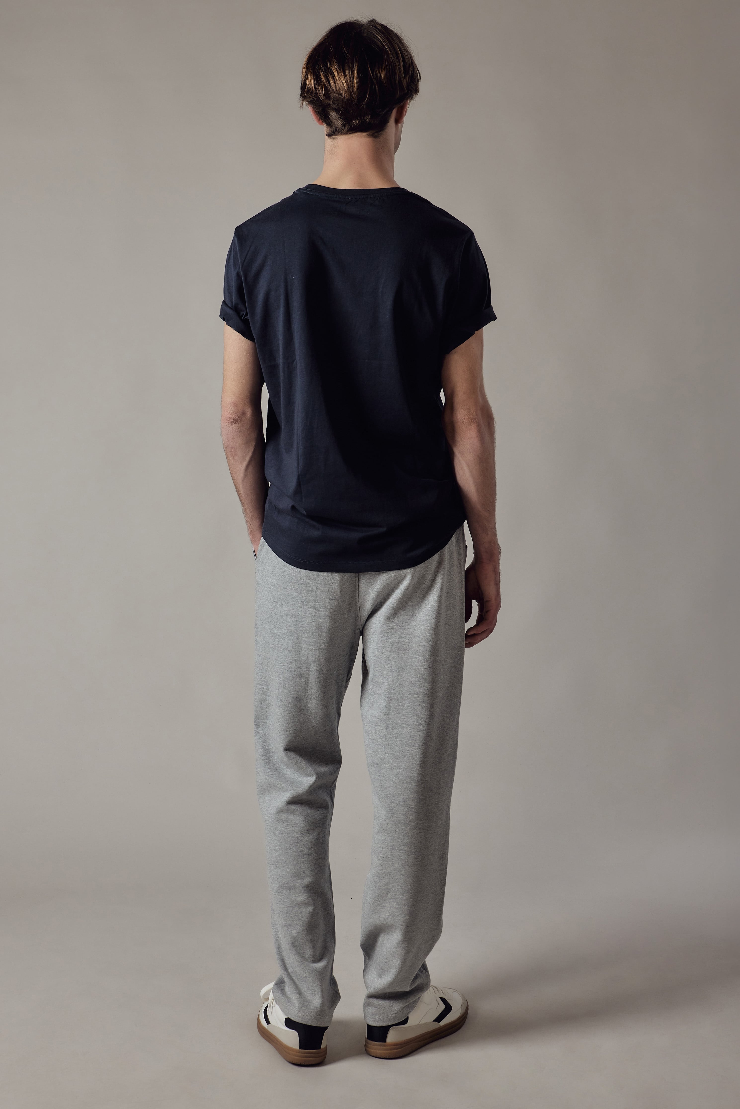 Joggers felpati con tasche laterali. Cinturino e polsini in costina.