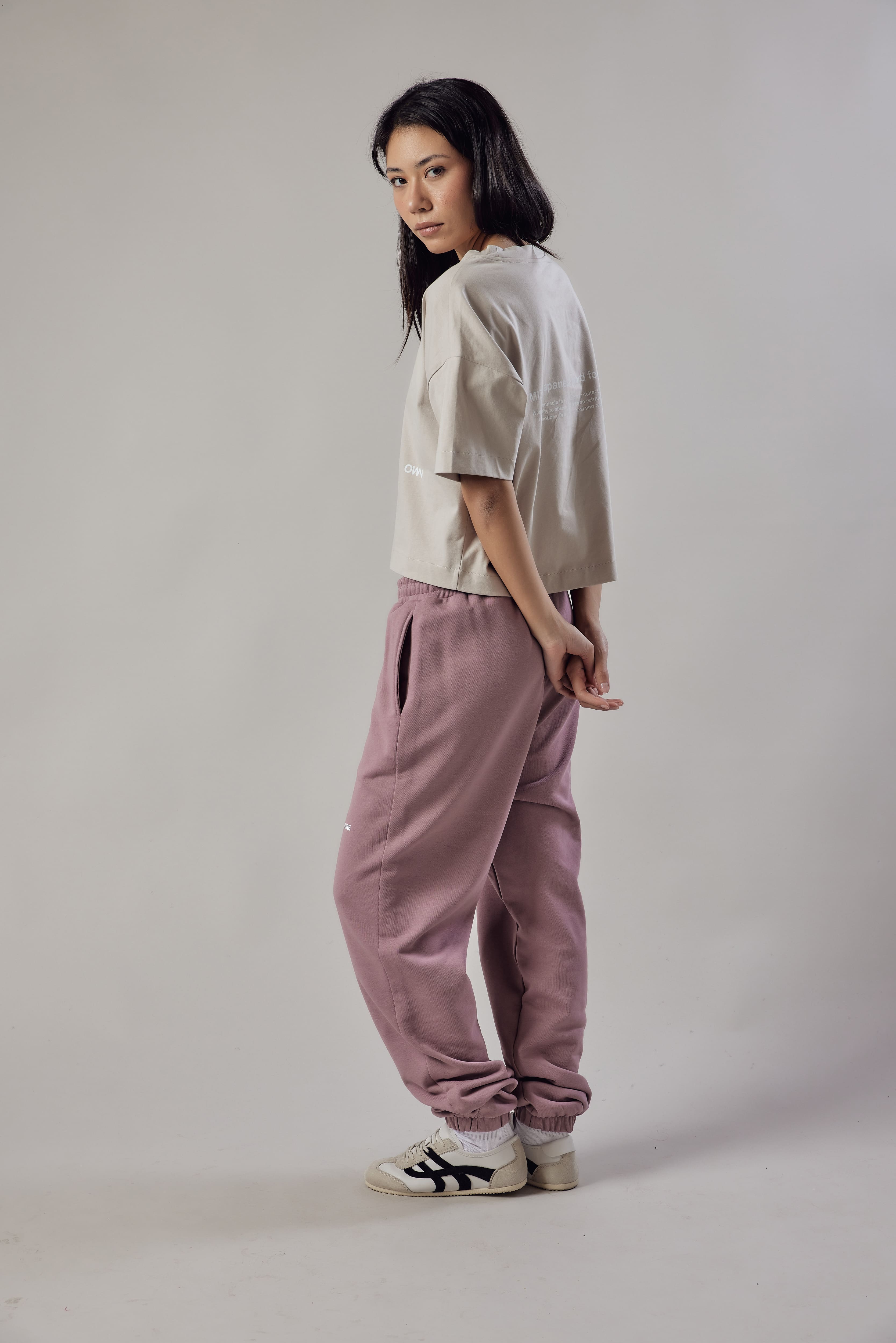 Joggers unisex con elastico sul fondo e stampa logo a contrasto sul fronte e retro.