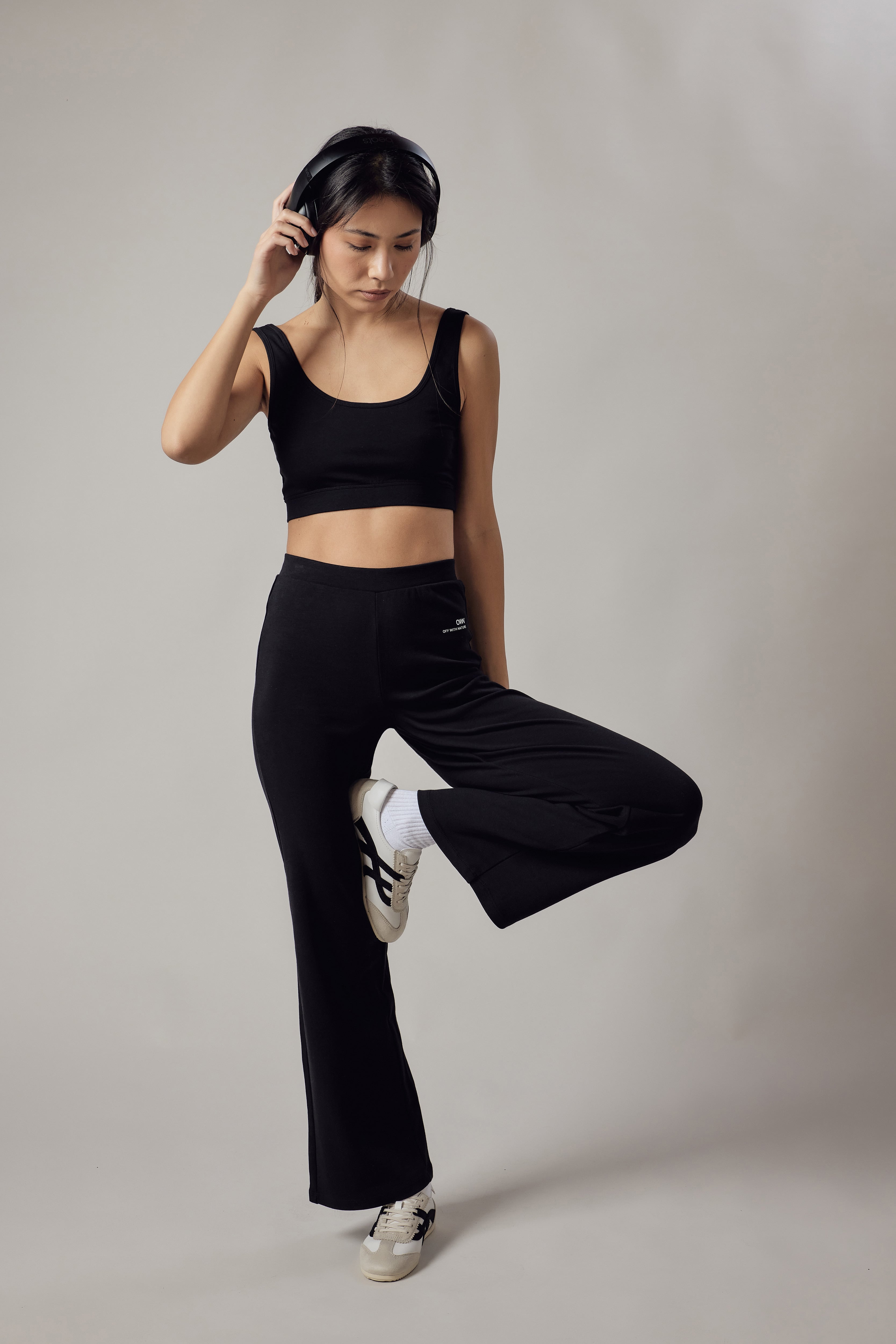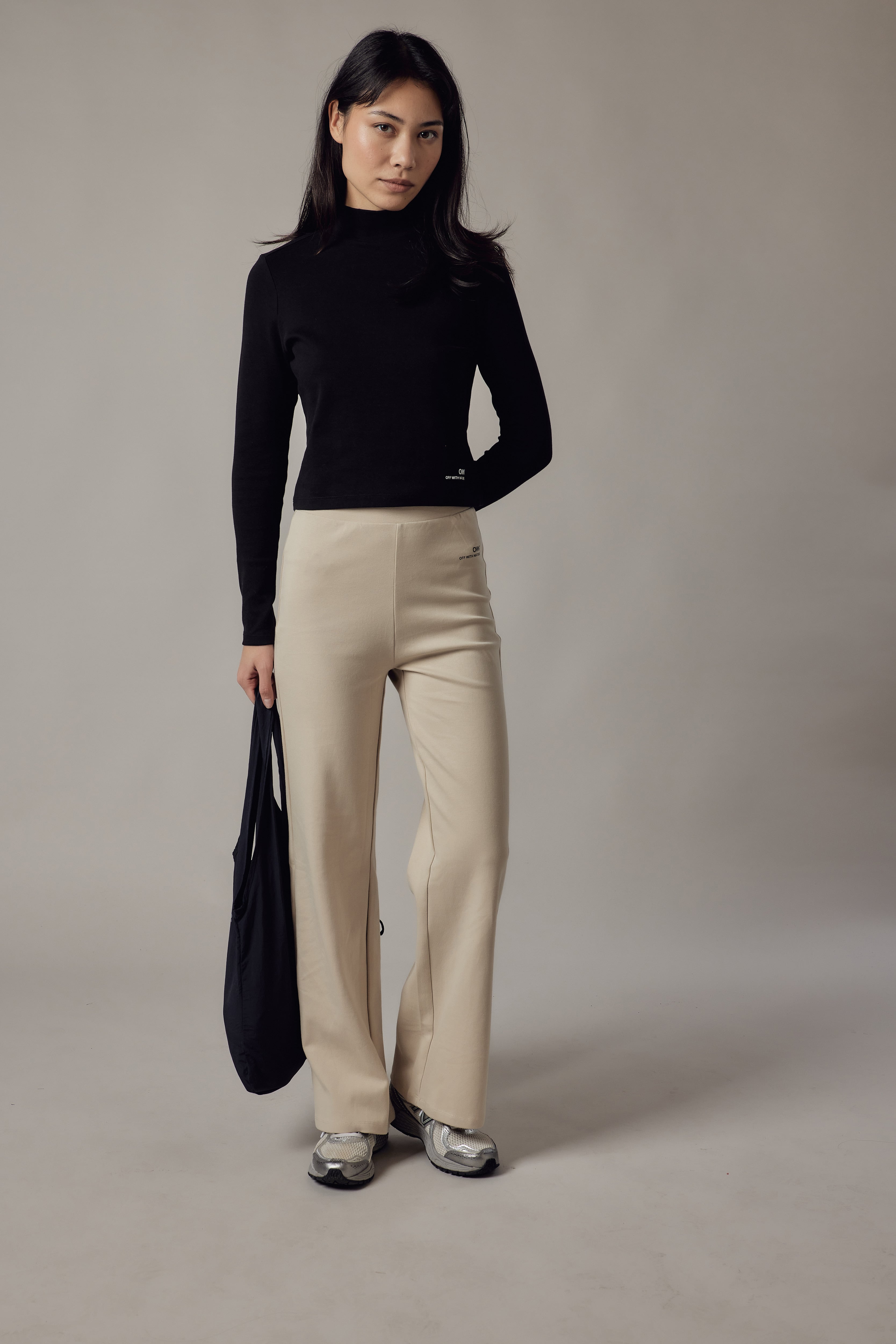 Panta Palazzo in interlock elasticizzato con elastico in vita.