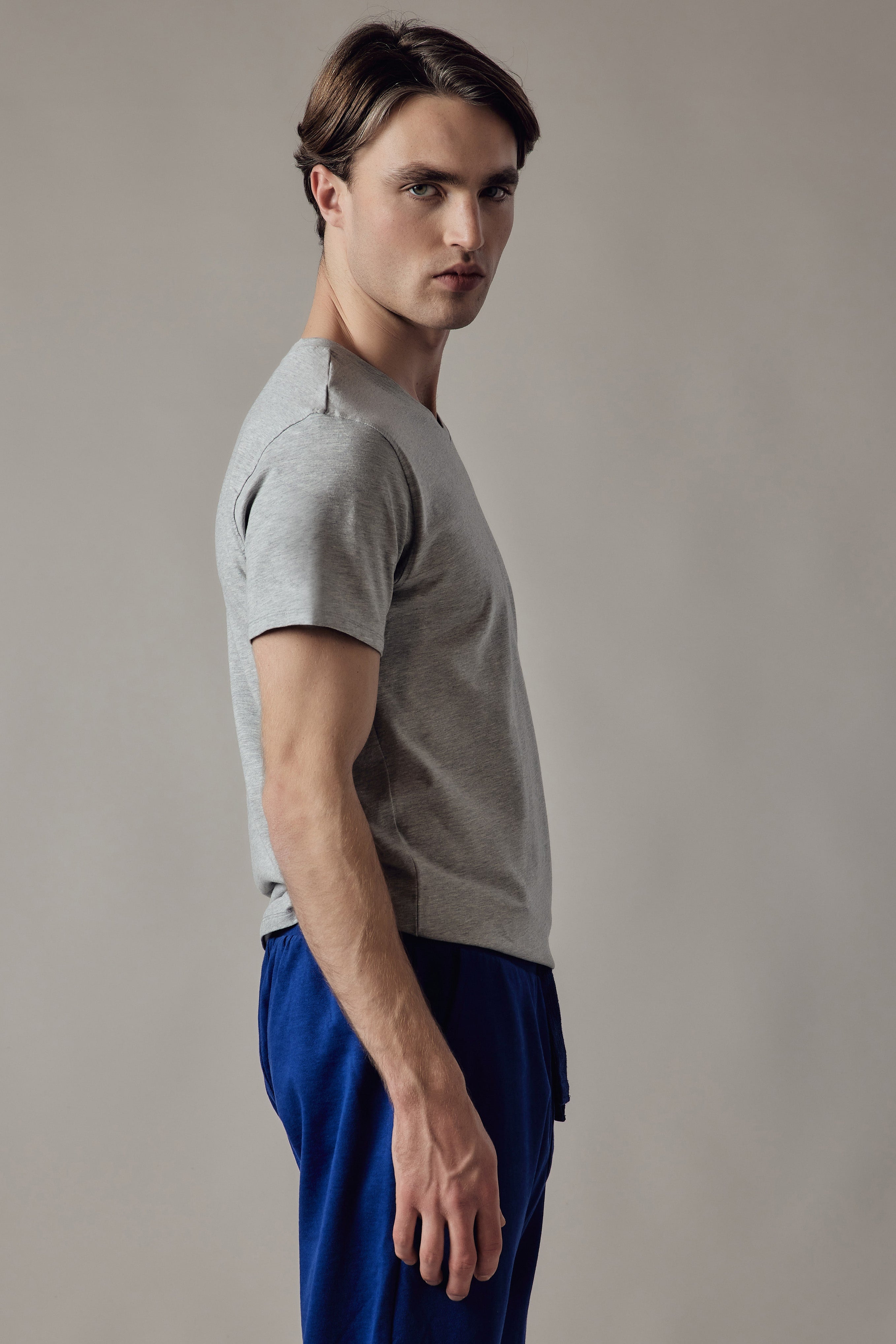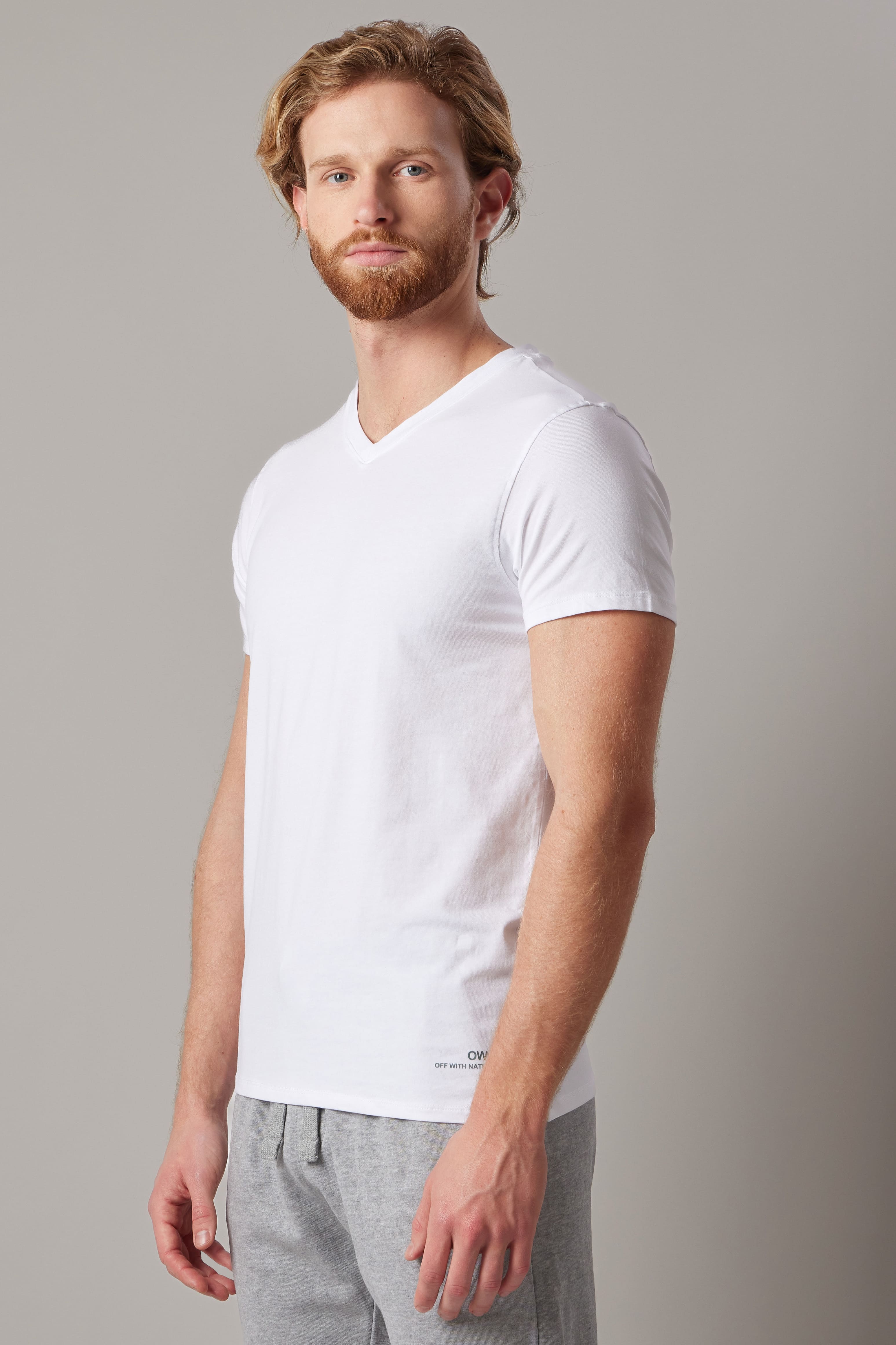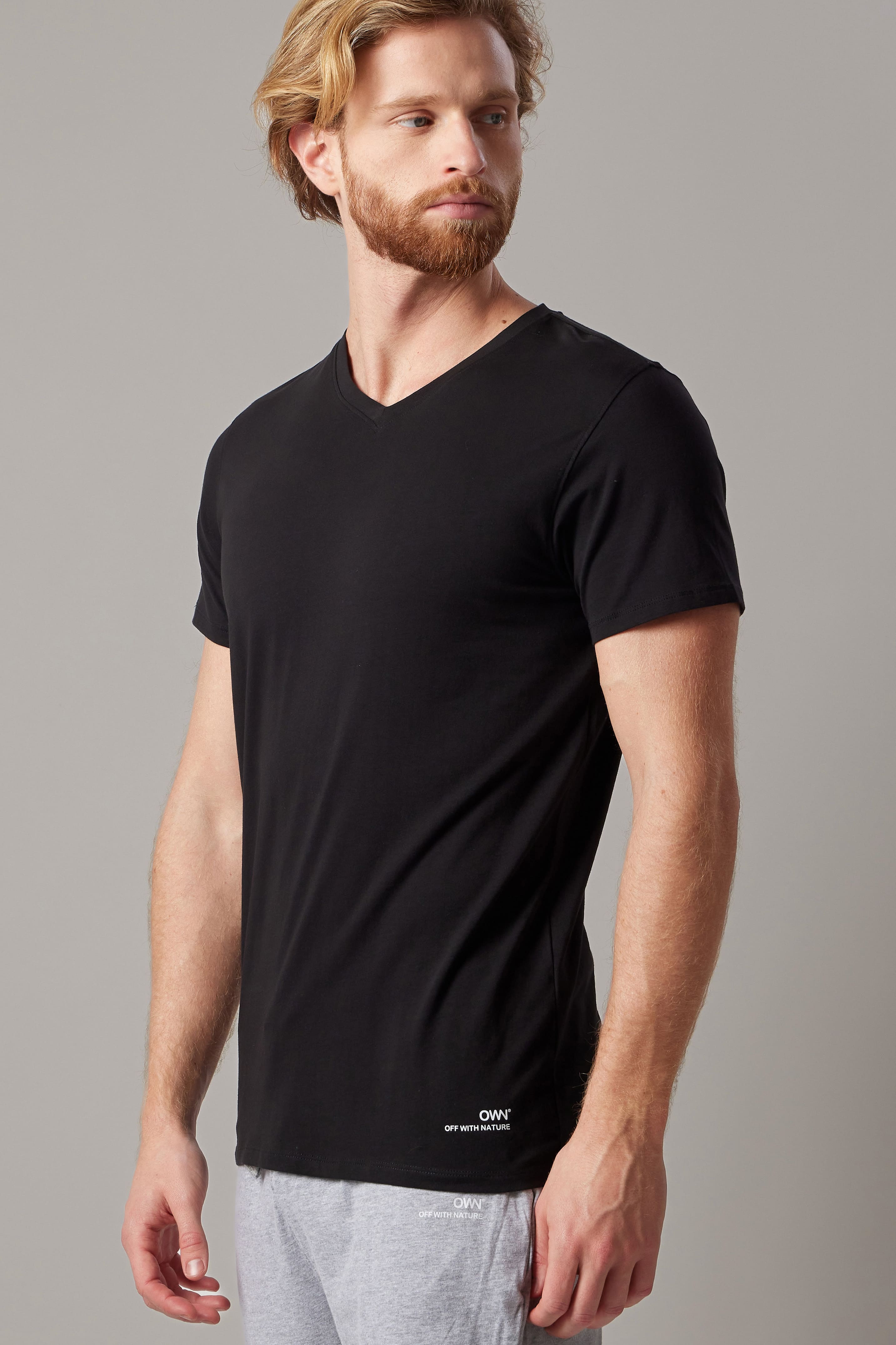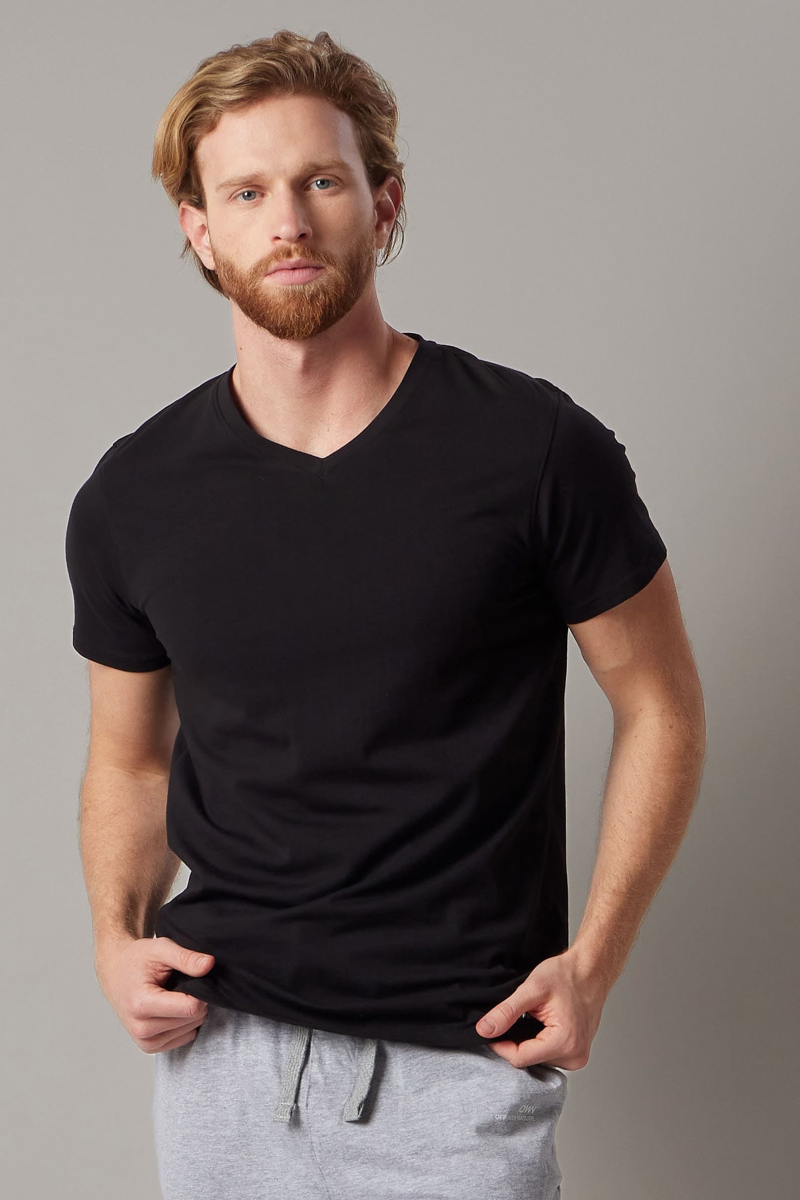 T-shirt elasticizzata scollo a V a manica corta con collo in costina.