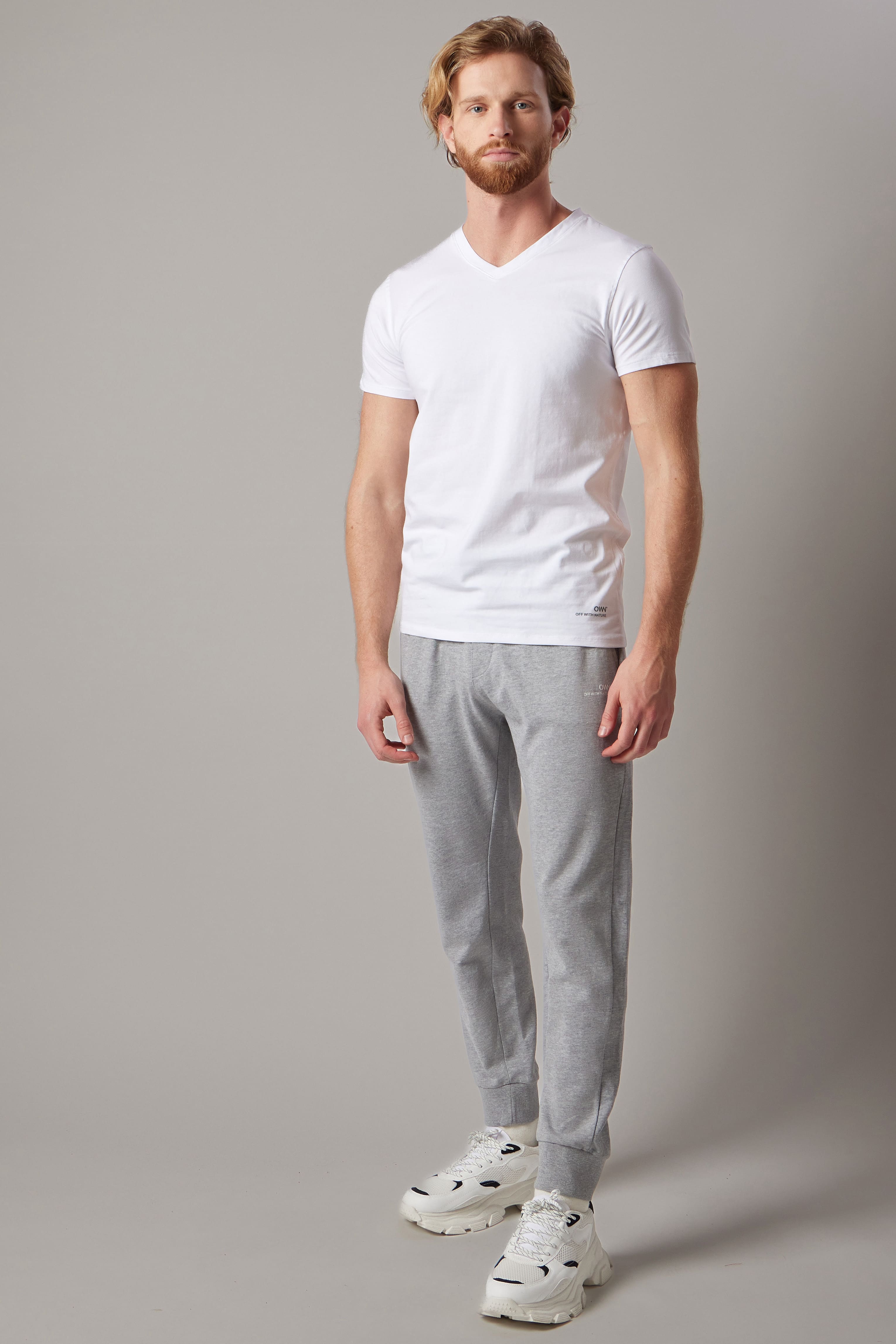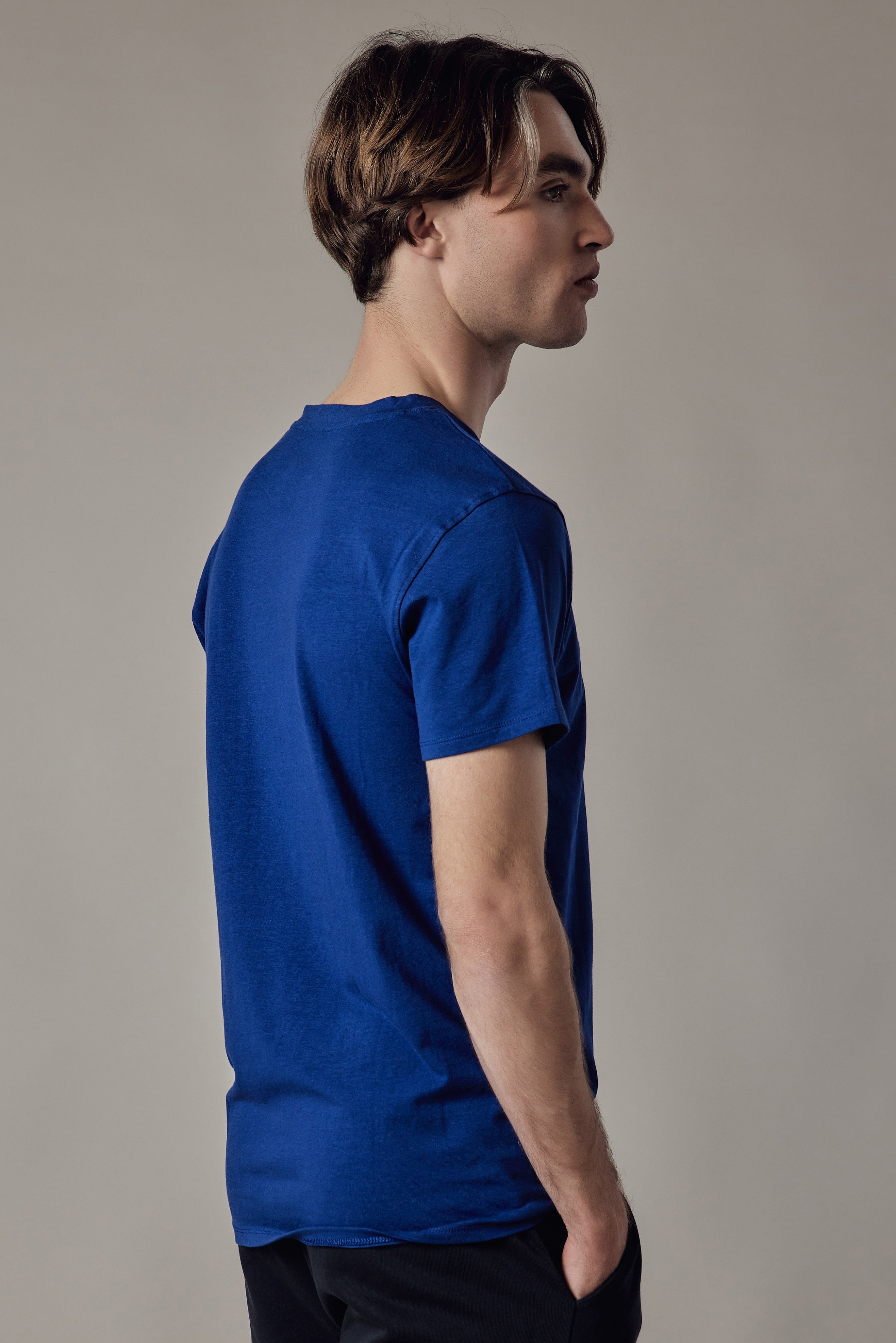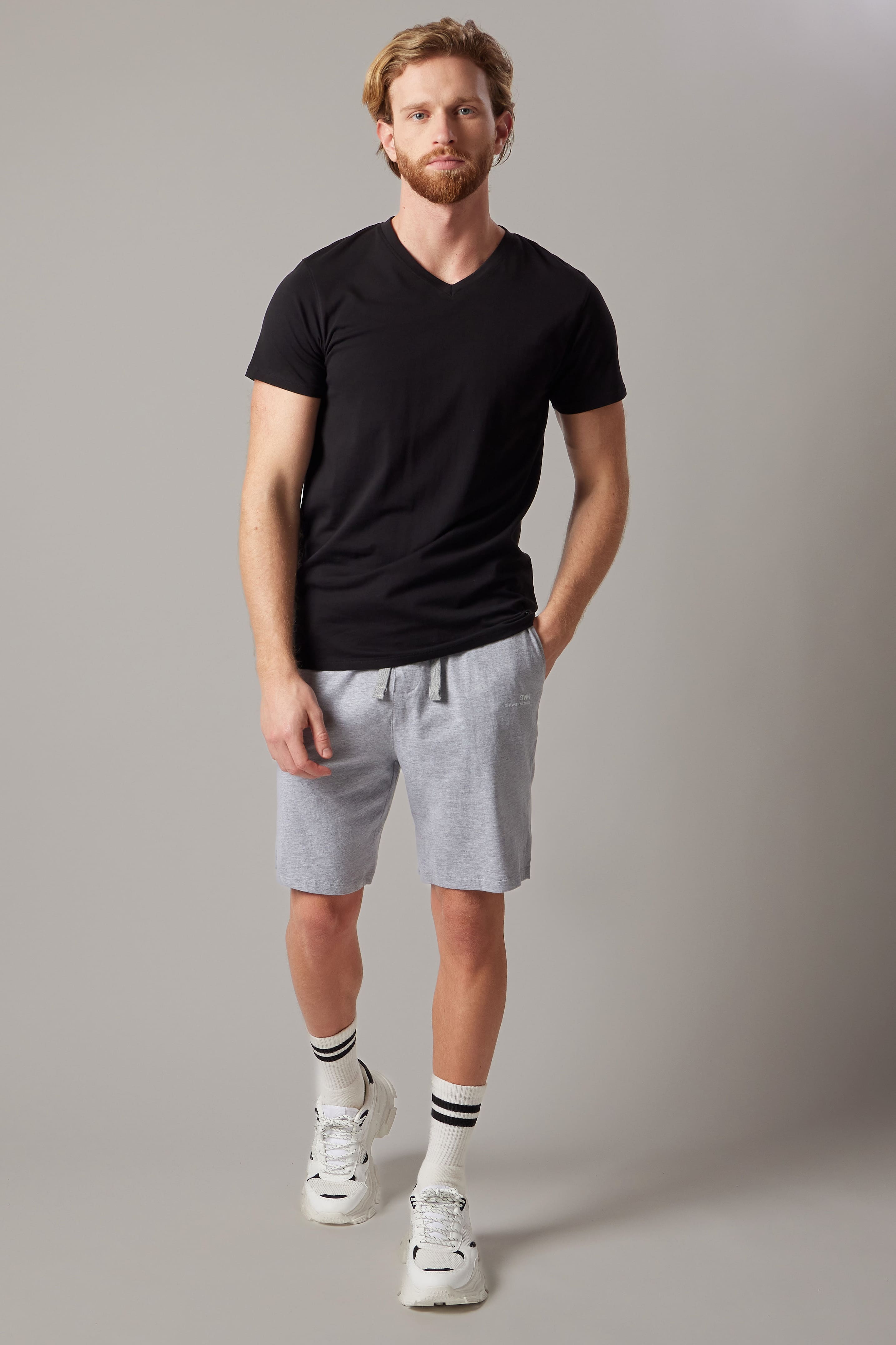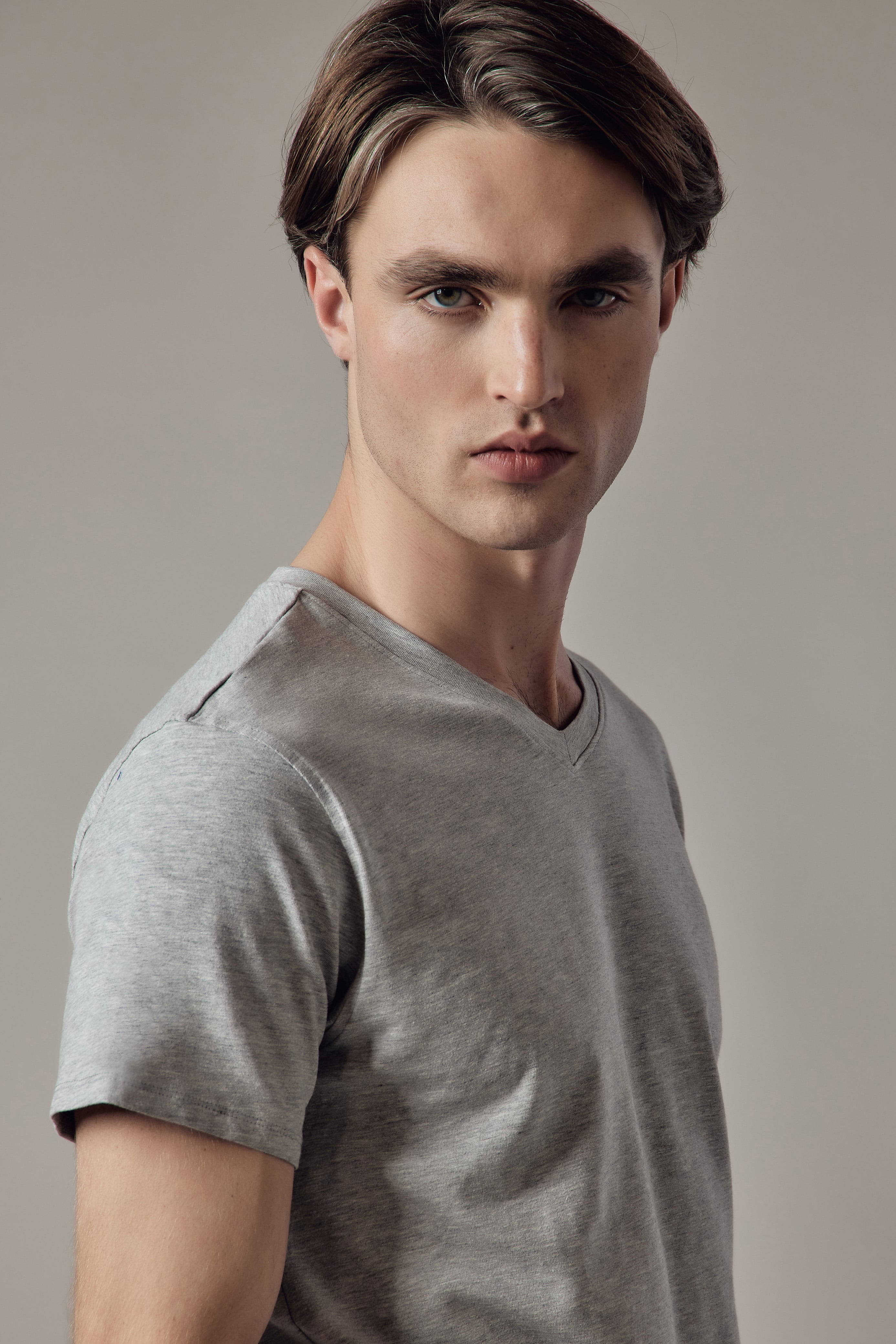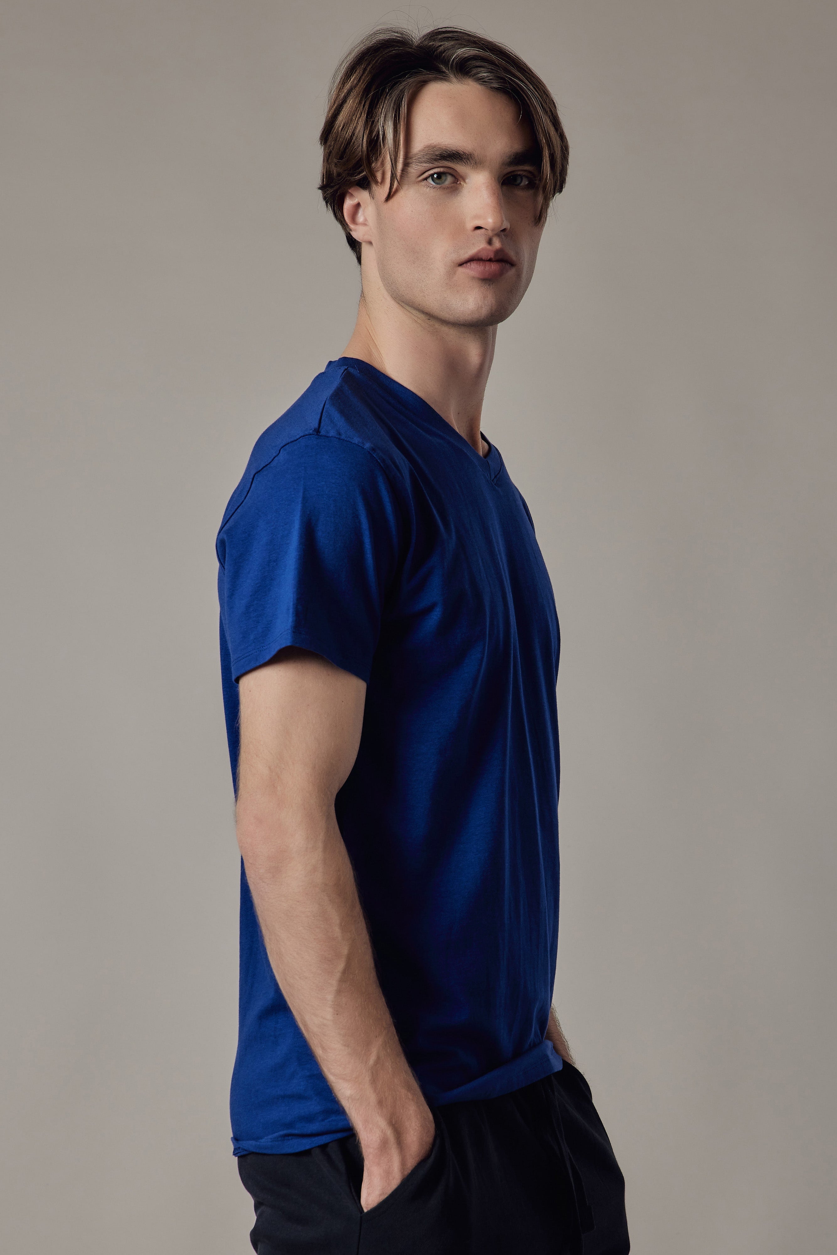 T-shirt elasticizzata scollo a V a manica corta con collo in costina.
