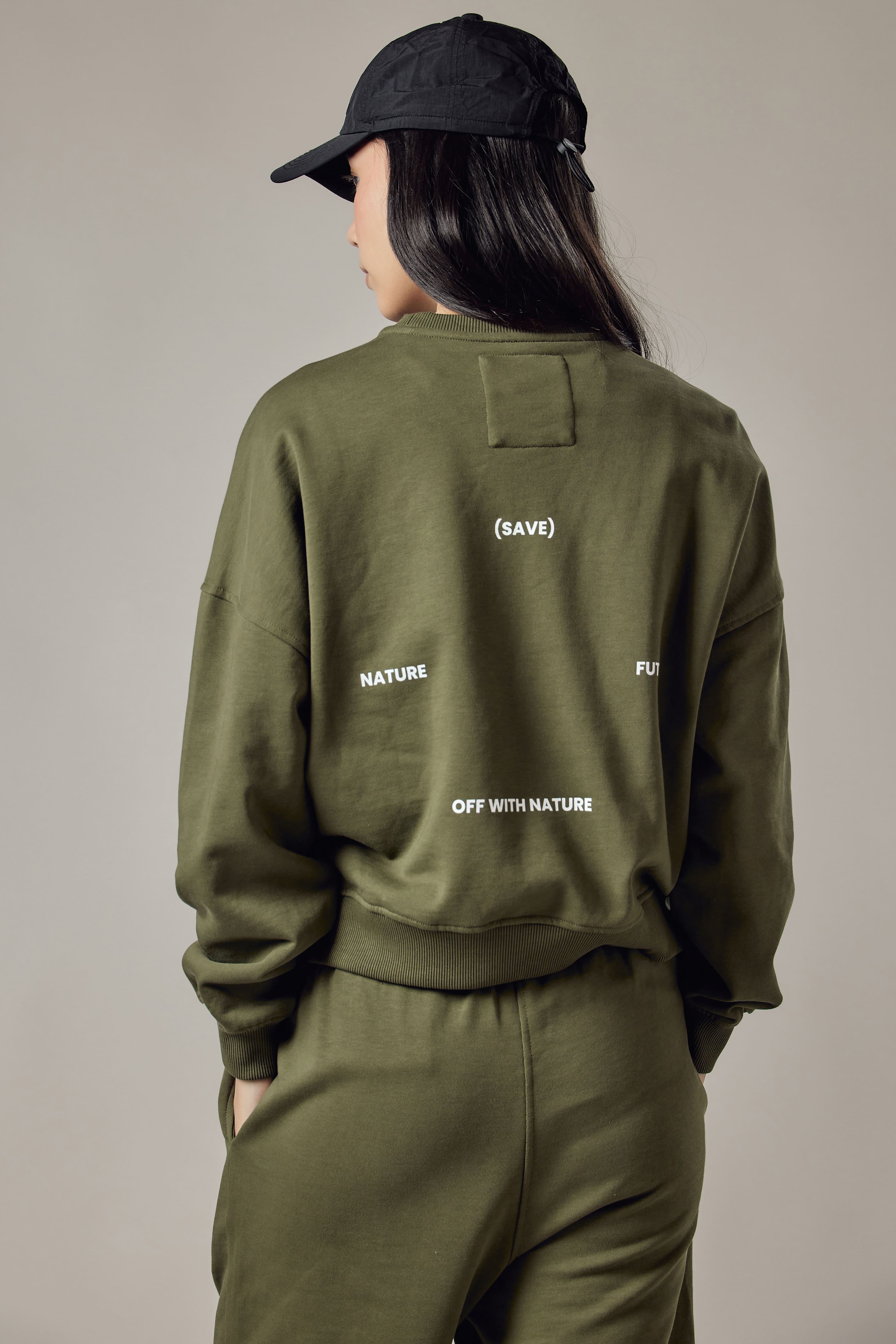 Felpa girocollo e stampa a contrasto sul retro e logo sul fronte.