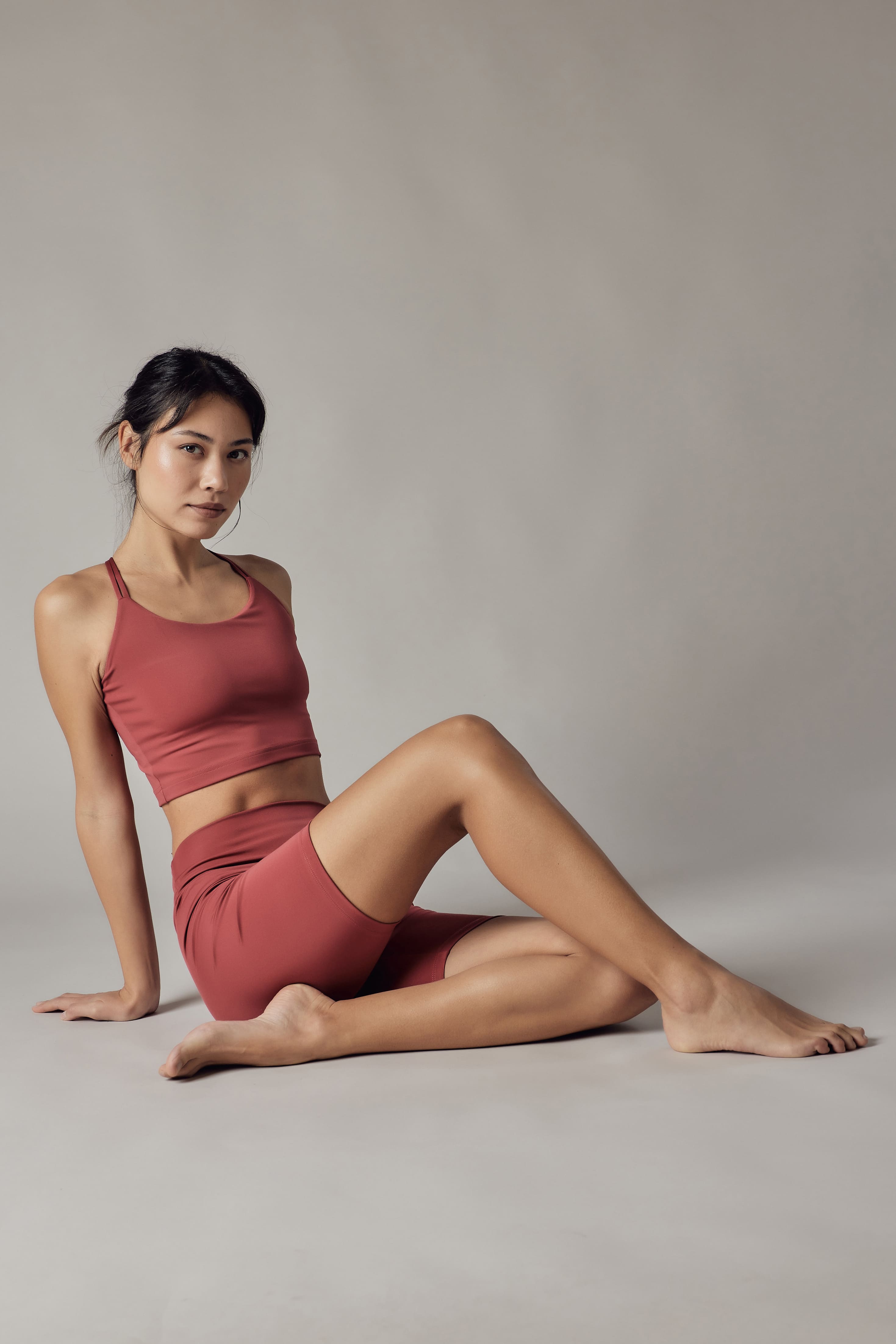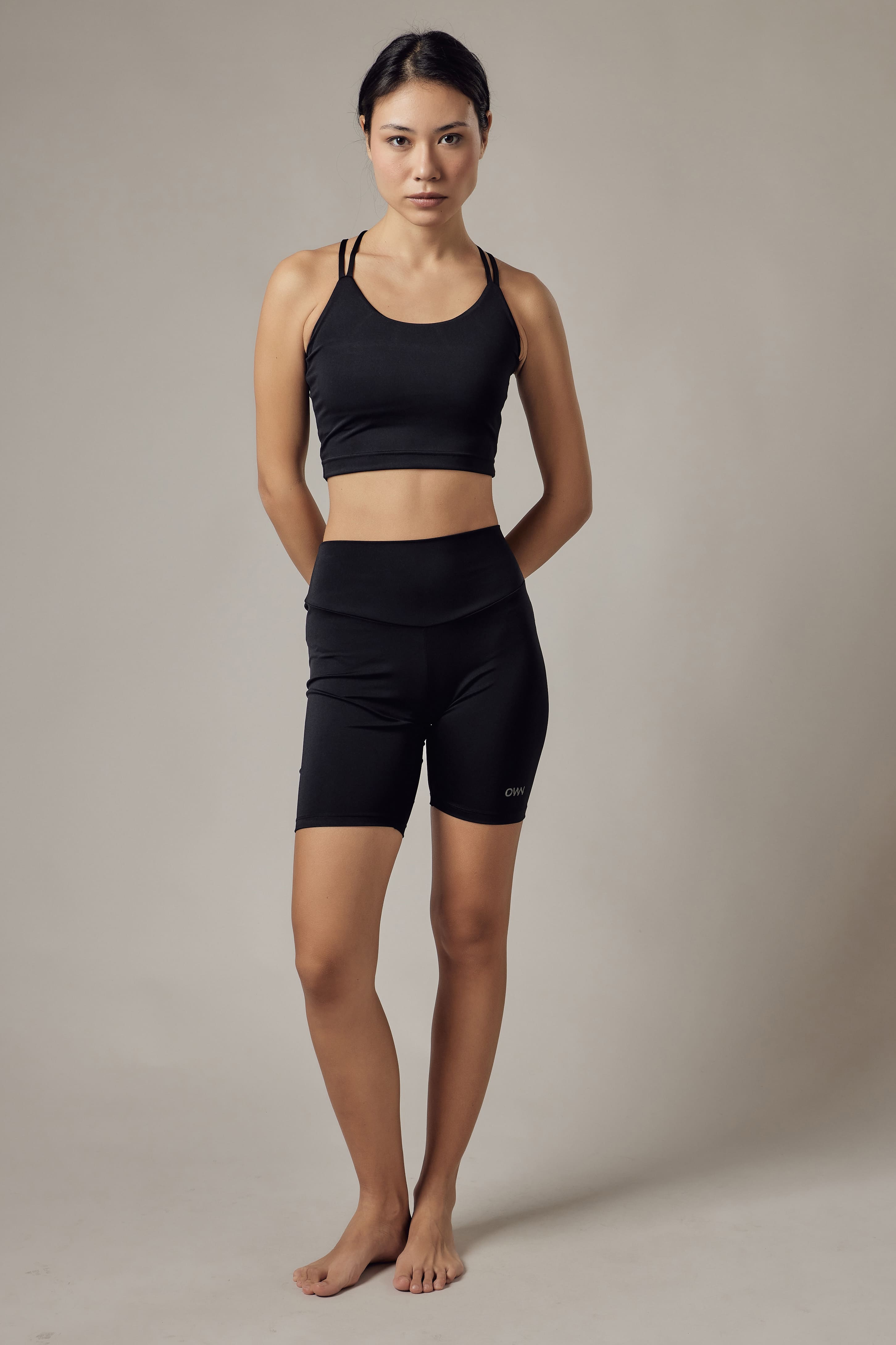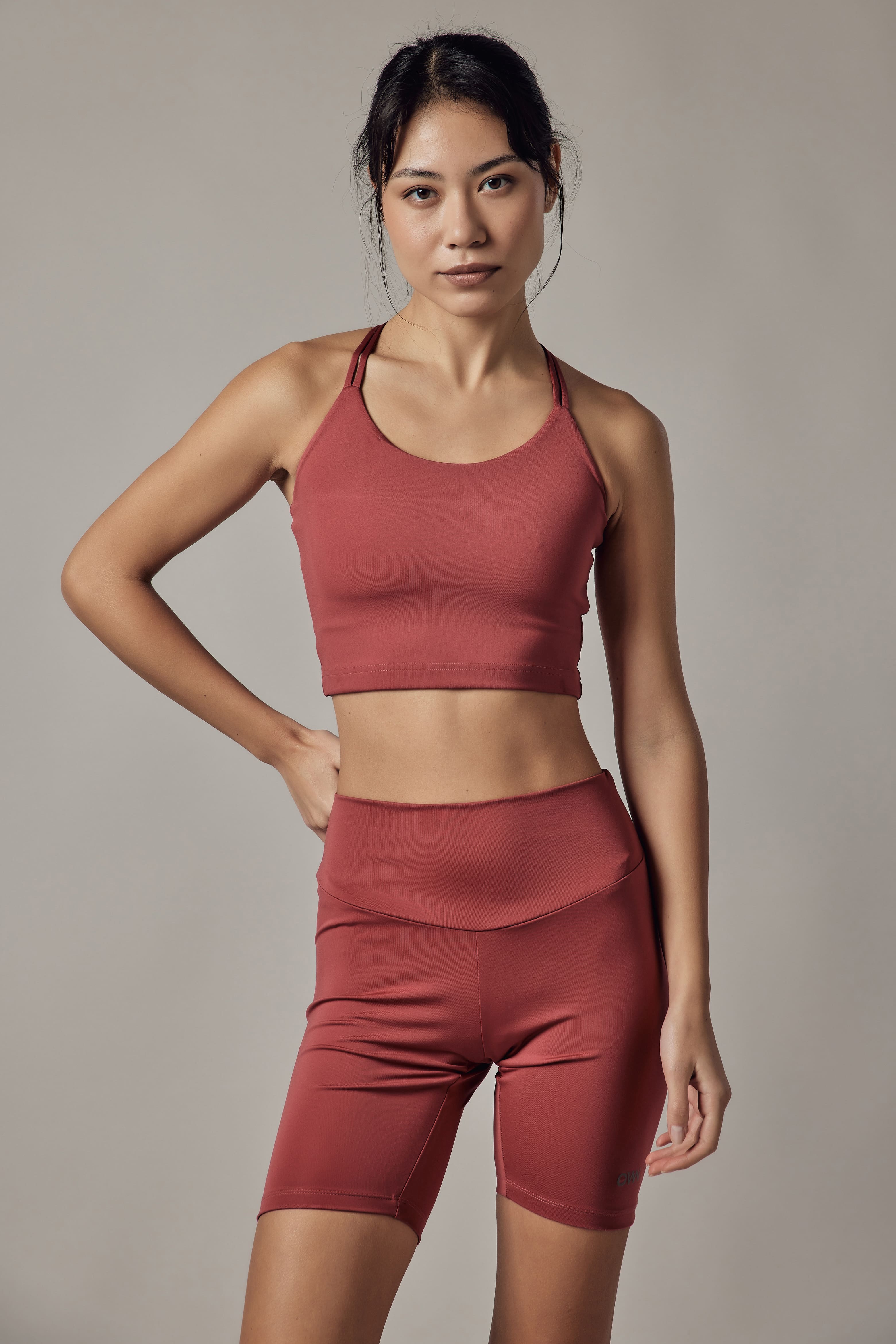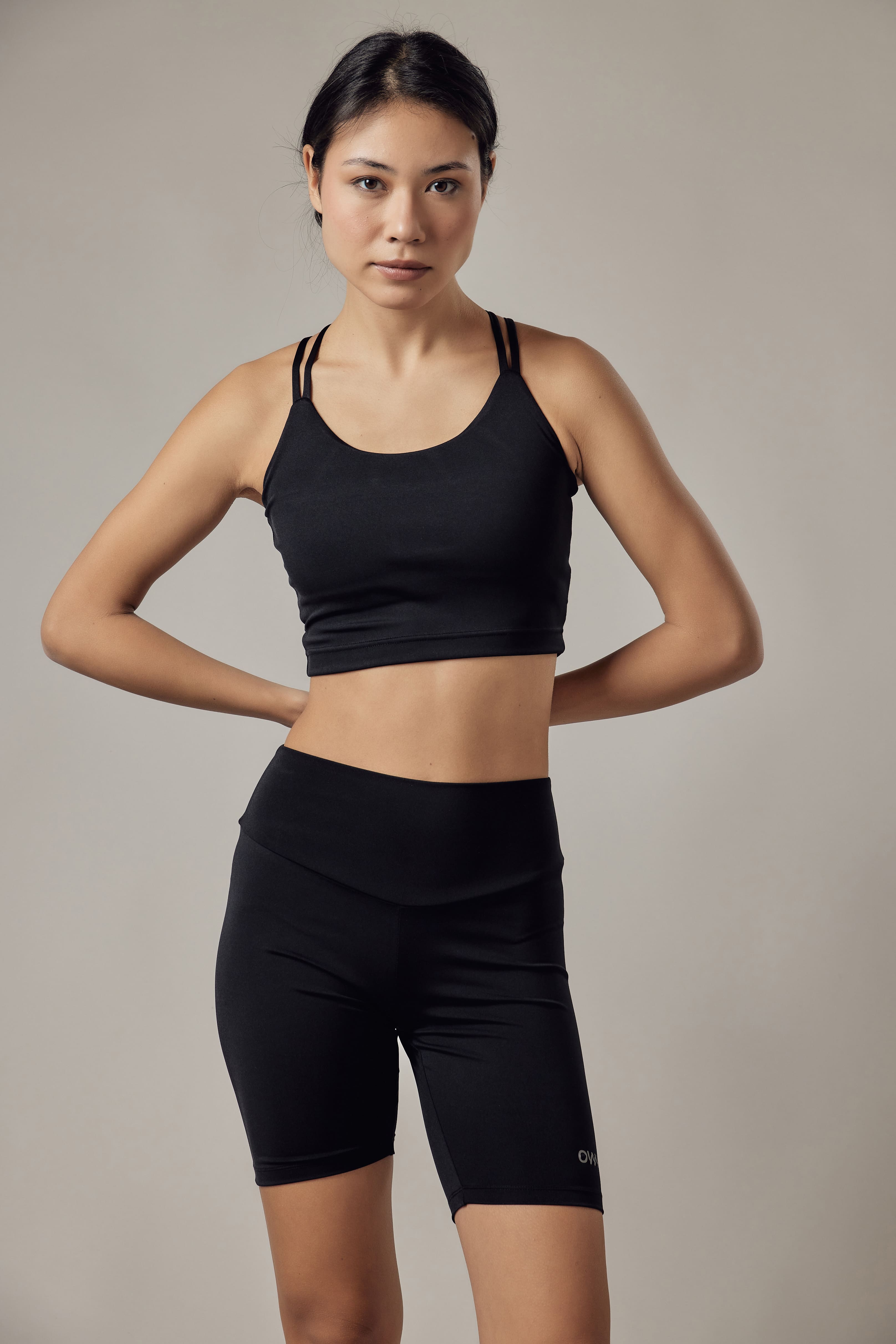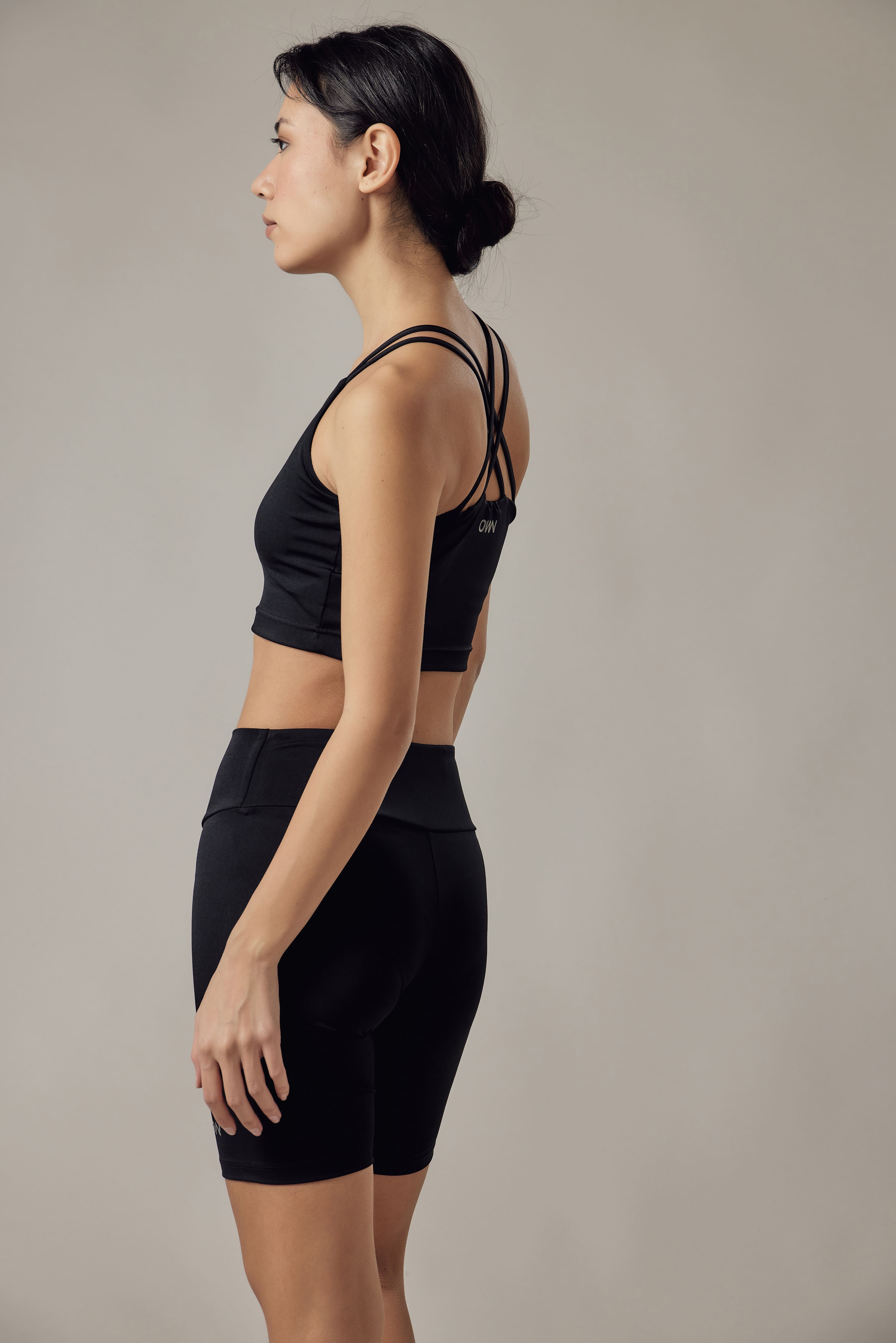 The sports bra offers strategic medium support. Featuring a thin strap detail on the back.
