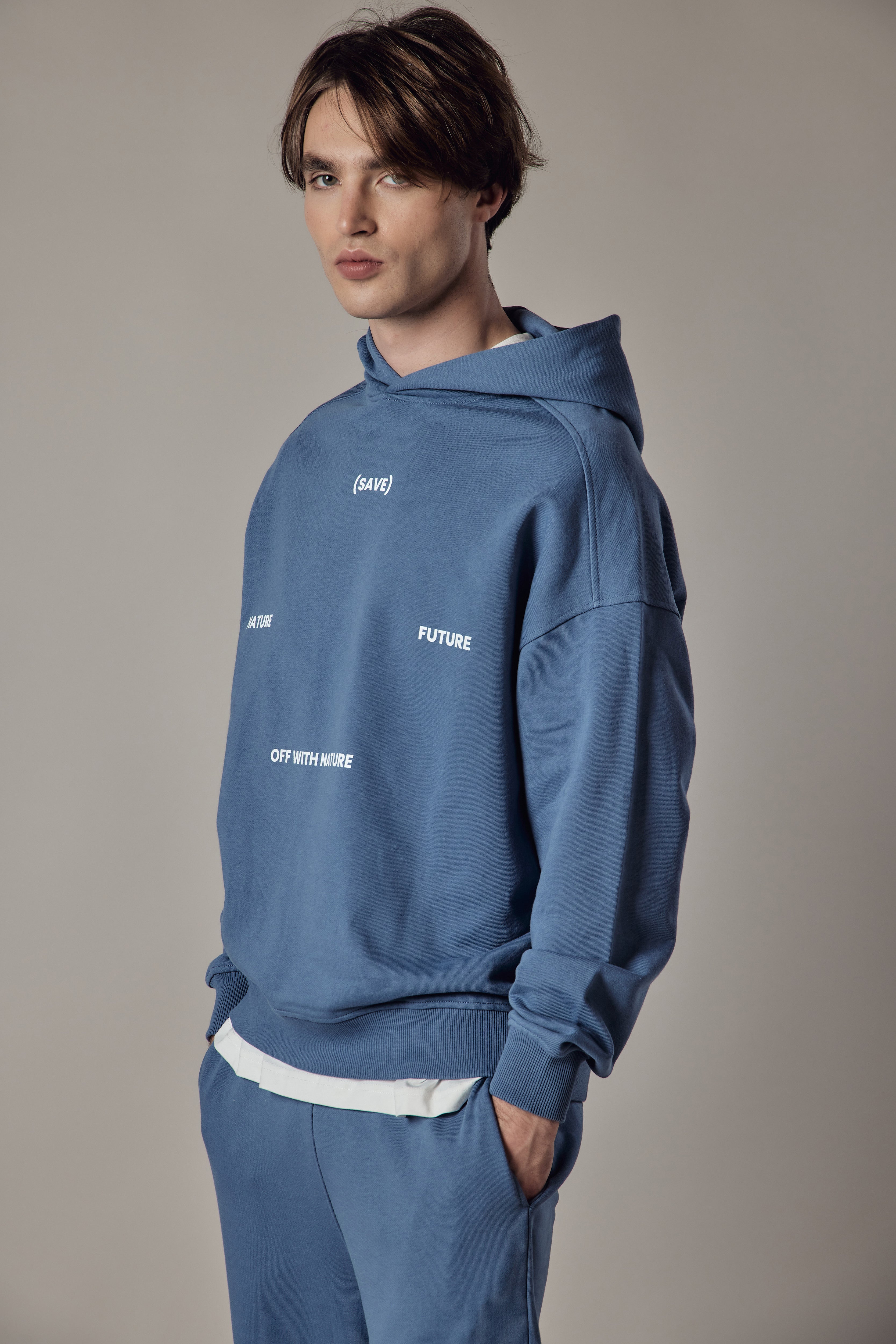 Set Felpa con Cappuccio + Joggers Loose Fit – Blu Polvere