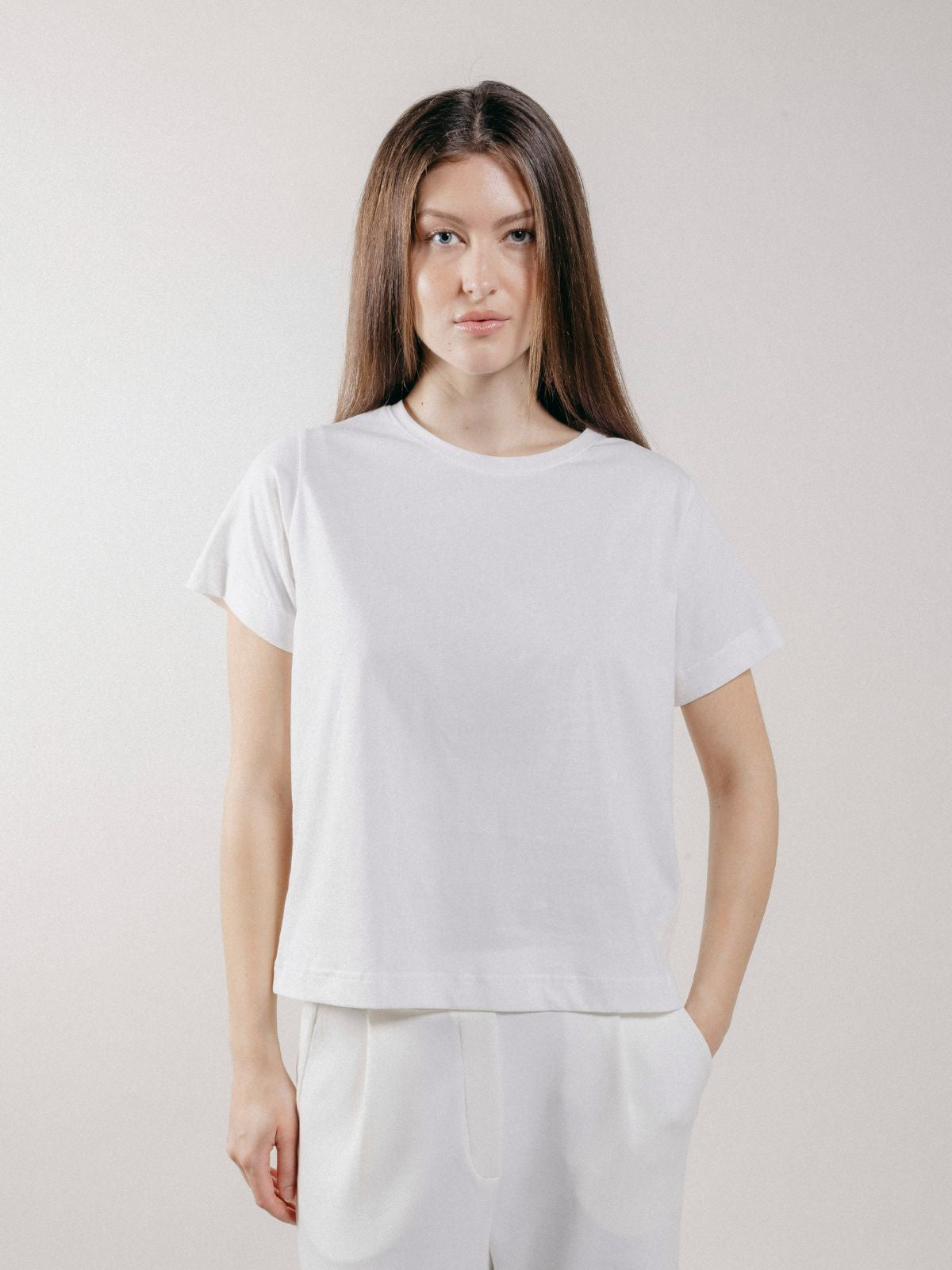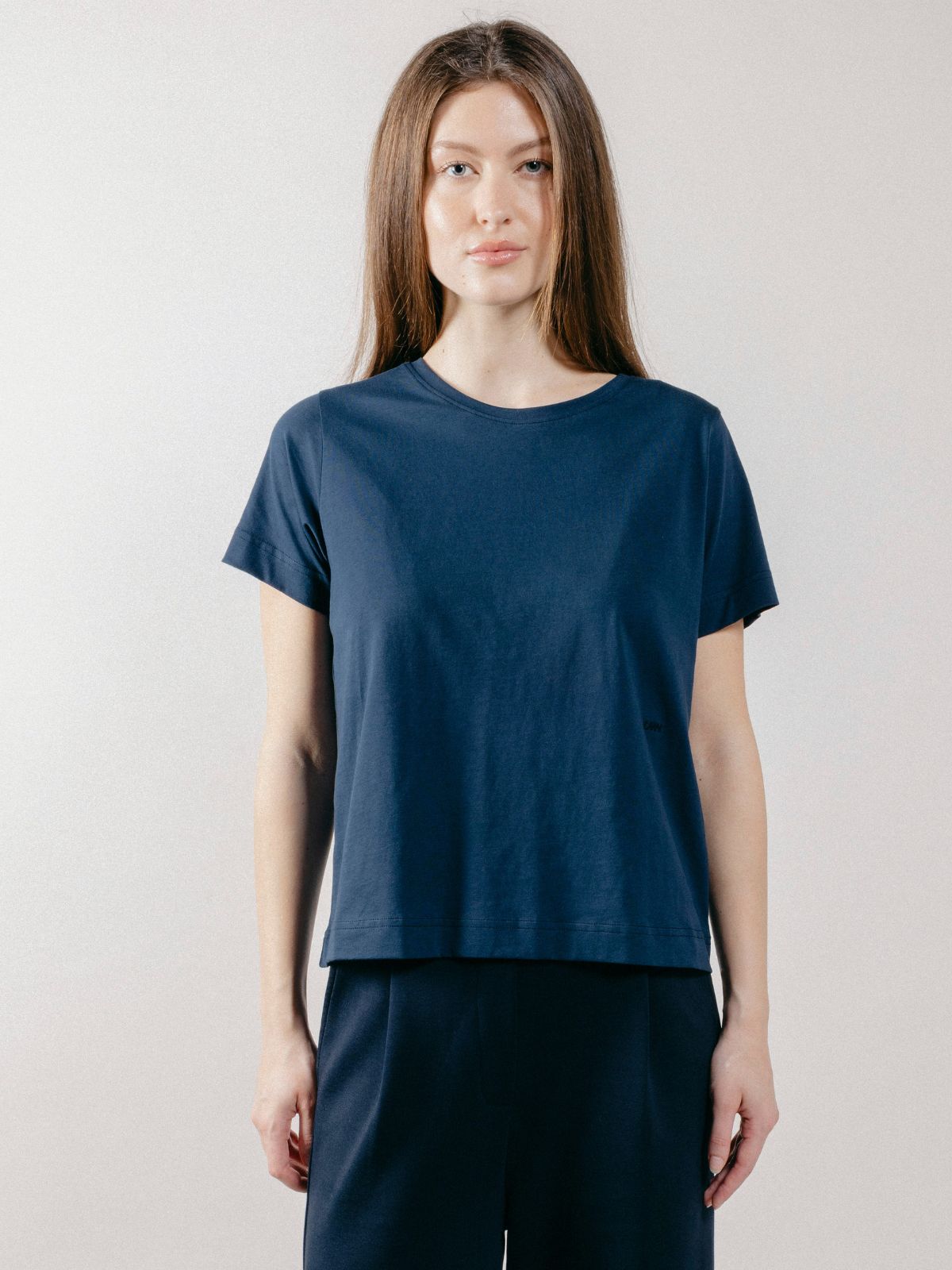 T-shirt girocollo realizzata in jersey con collo in costina e logo ricamato tono su tono.